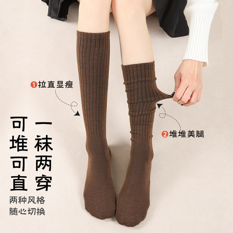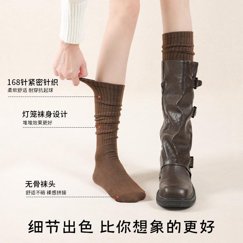堆堆袜子女款秋冬季配靴子小腿袜套保暖白色中筒袜无骨外穿长筒袜