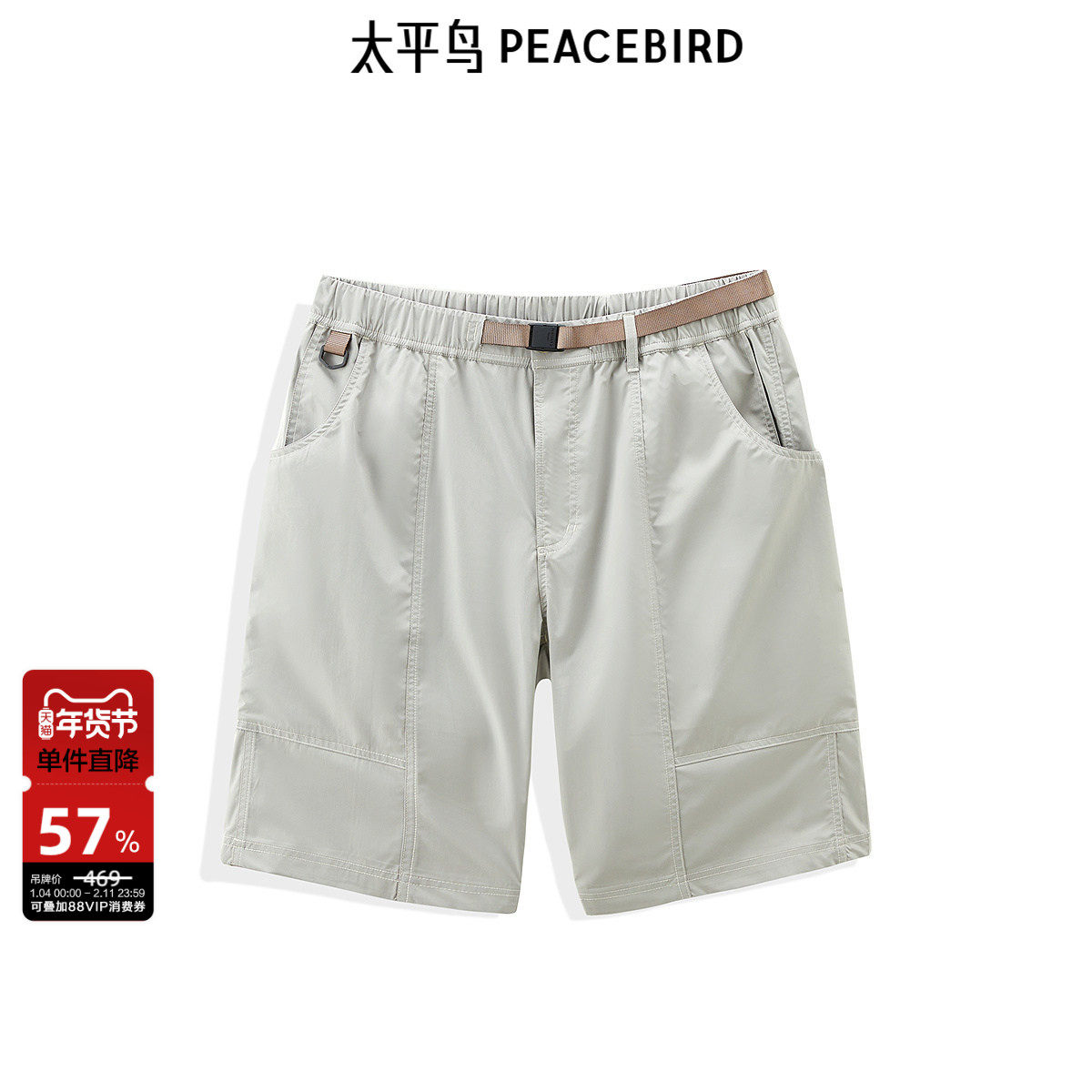 太平鸟男装 夏季潮流休闲中短裤户外工装感五分运动直筒中裤潮