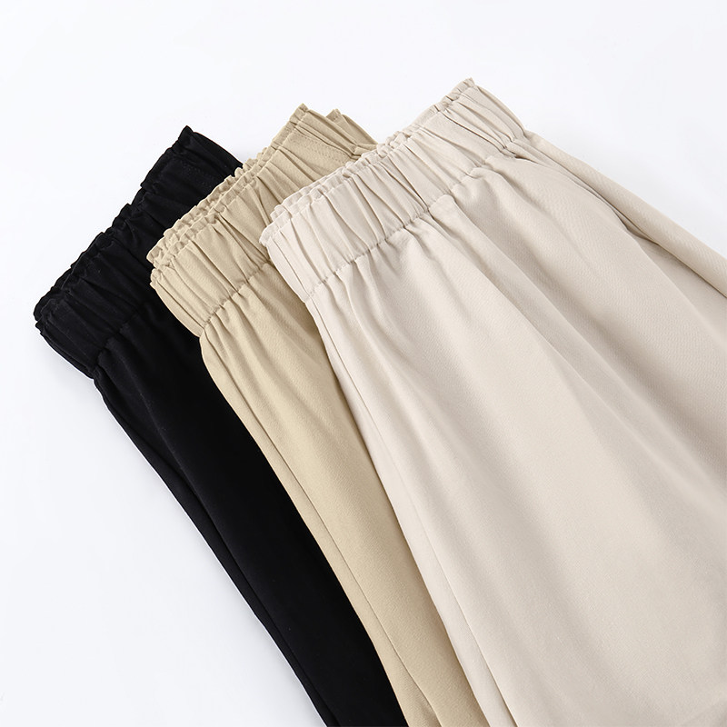 双侧带口袋棉绸绵绸人造棉高腰显瘦直筒裤女宽松休闲百搭阔腿长裤