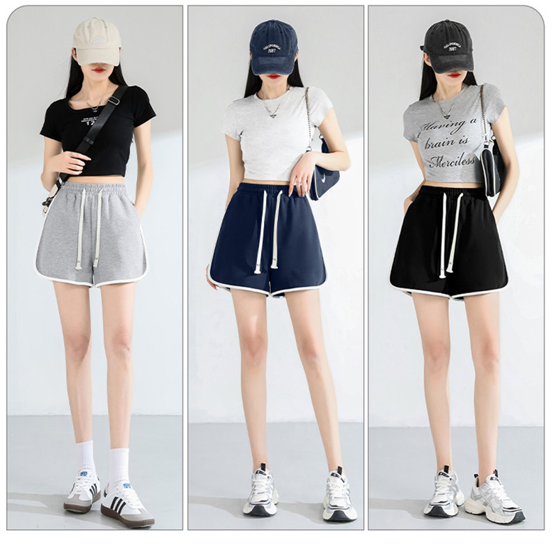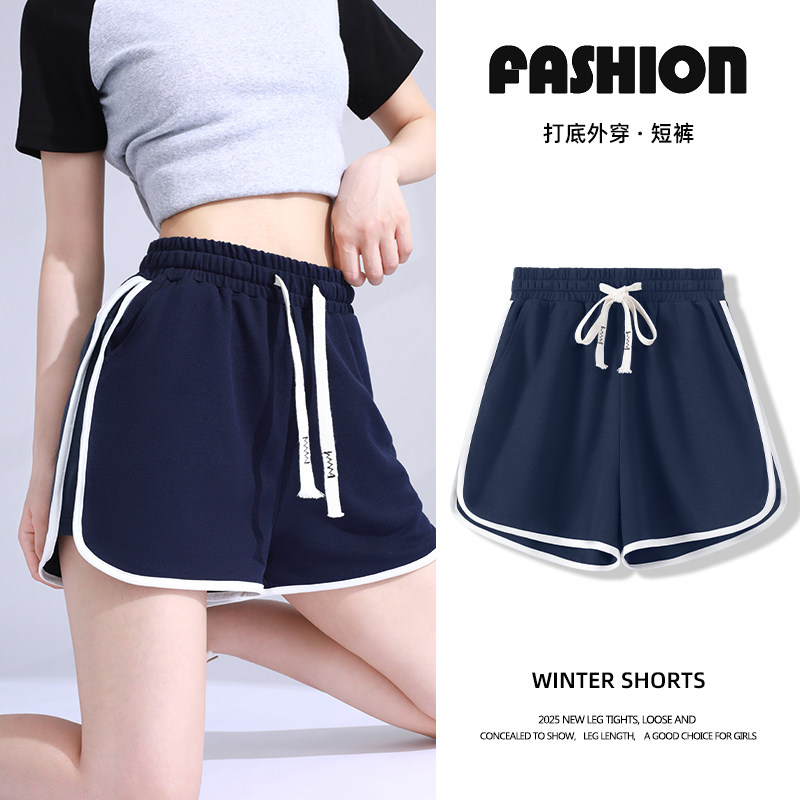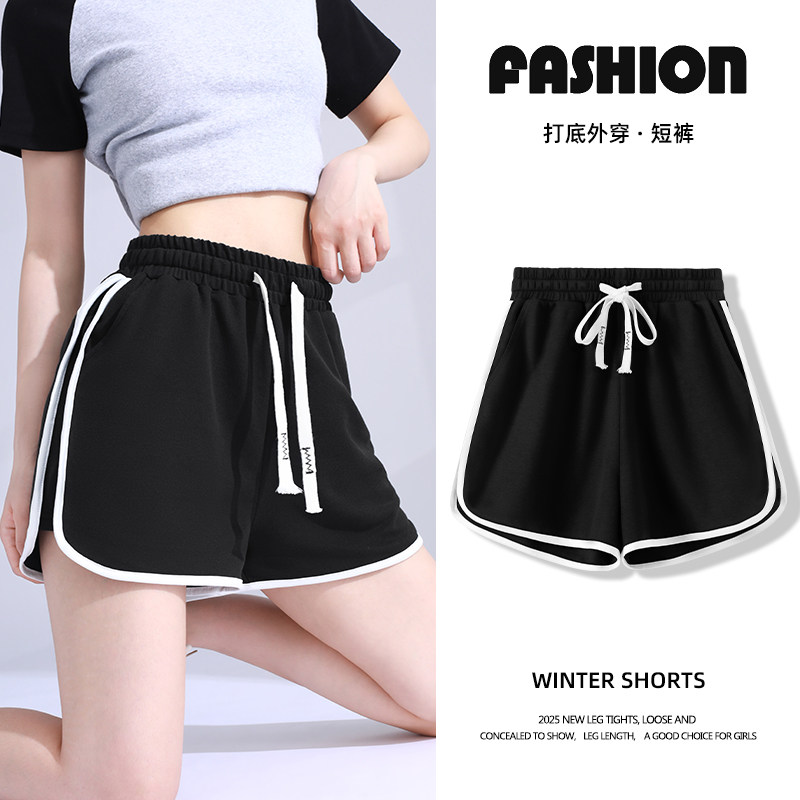 KHV真维斯运动短裤女夏季2025新款高腰外穿休闲热裤阔腿三分裤子