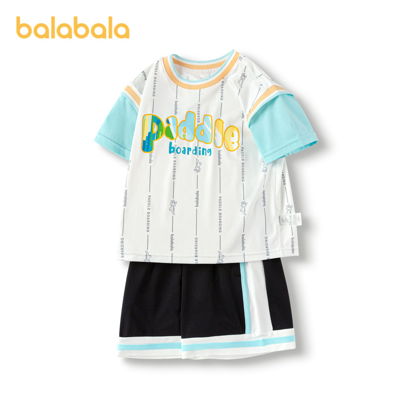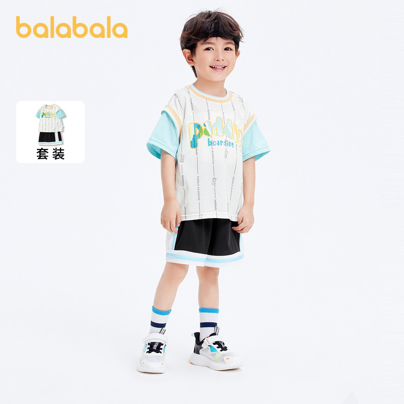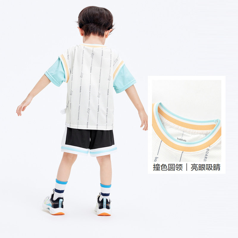 巴拉巴拉童装男童短袖套装夏装撞色假两件潮小童撞色拼接时尚宽松