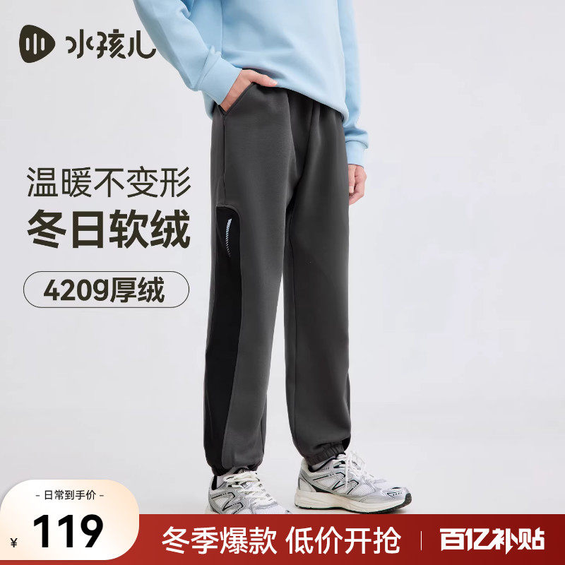 水孩儿童装加绒长裤女童2025秋冬新品男童休闲保暖裤中大童厚裤子