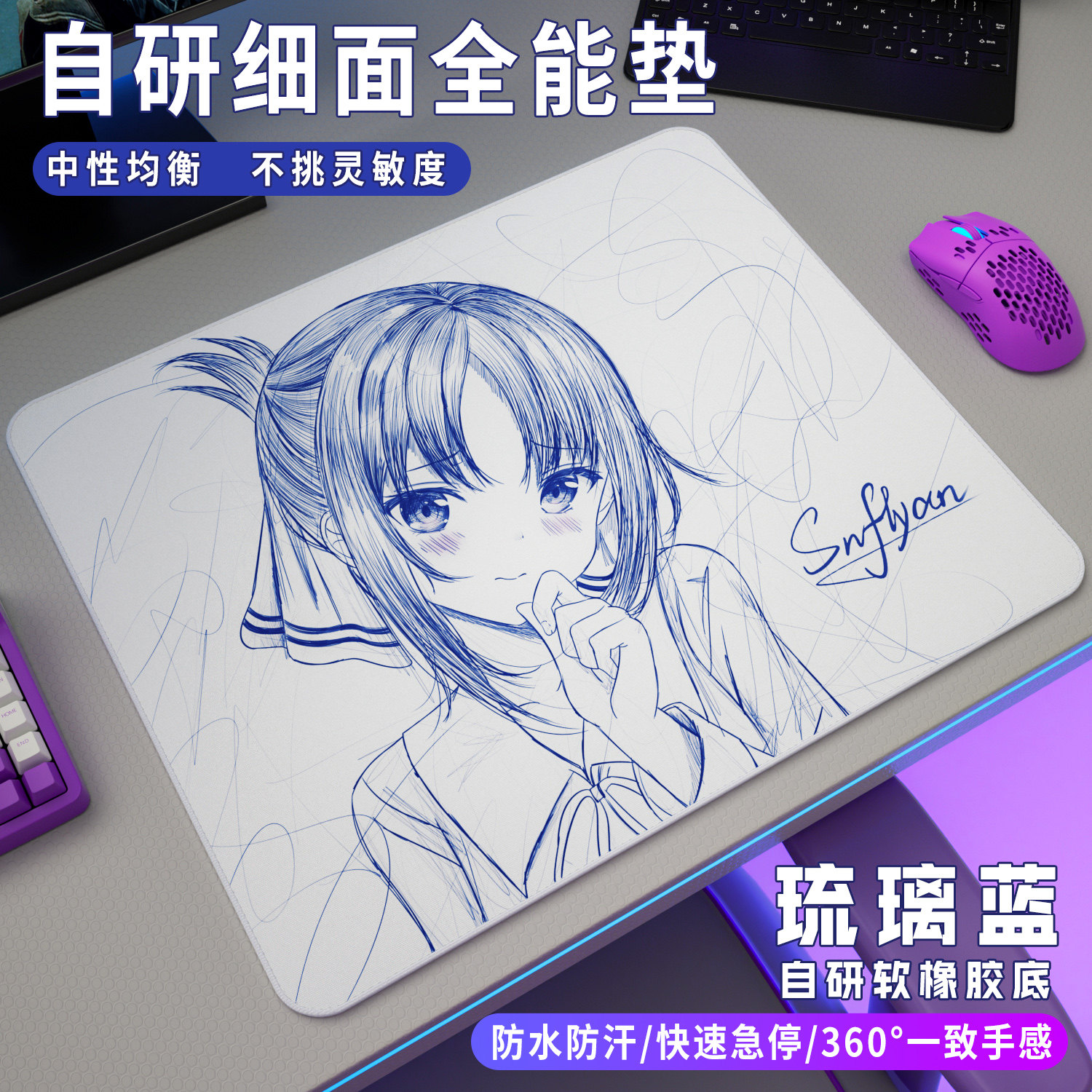 赛飞燕琉璃 二次元线稿电竞鼠标垫自研细面中性均衡垫fps游戏专用