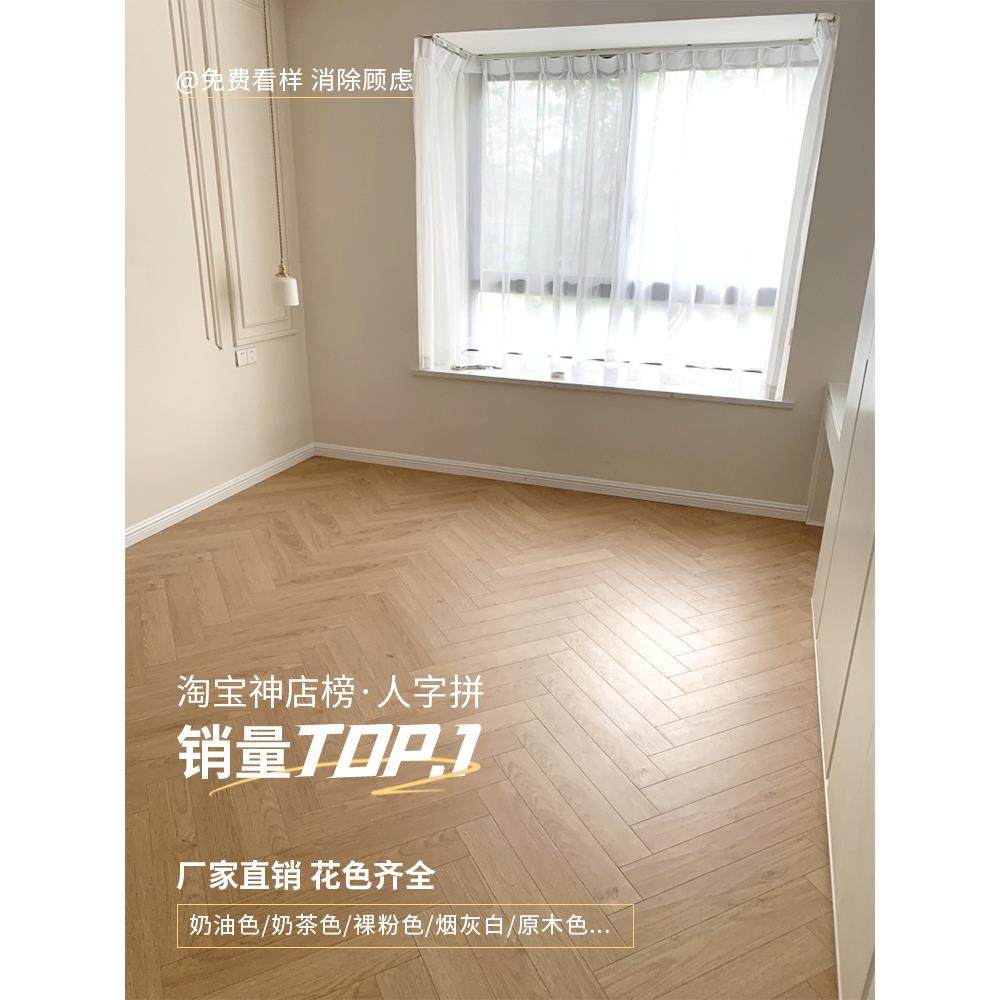 12mm艺术人字拼灰色黄橡木纹原木色奶油风环保锁扣强化复合木地板