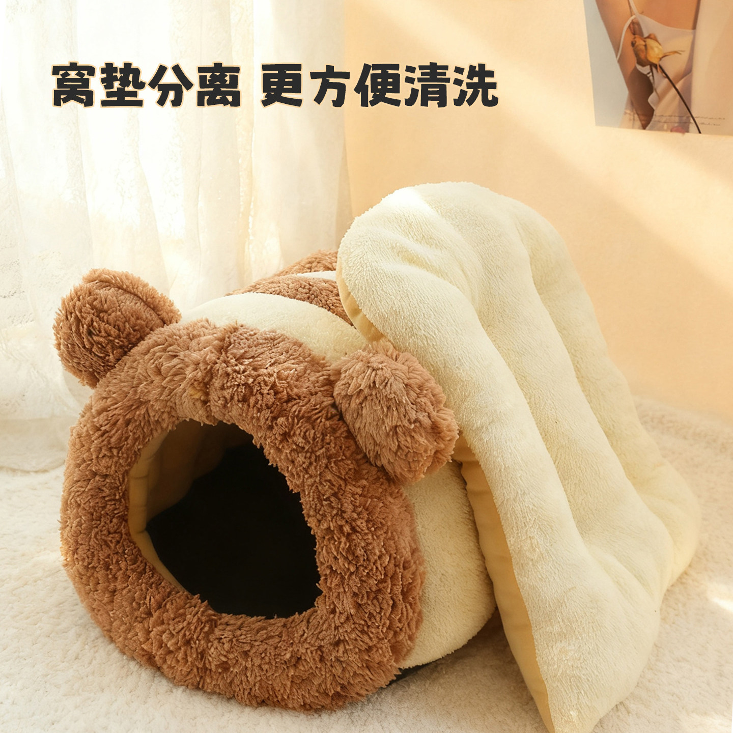猫窝冬季保暖半封闭式可拆洗四季通用猫咪窝狗窝猫床猫屋幼猫窝垫