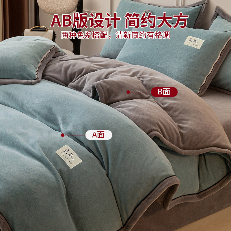 冬季加绒被套单件牛奶绒珊瑚绒宿舍单人单独毛绒被罩1.5米四件套3
