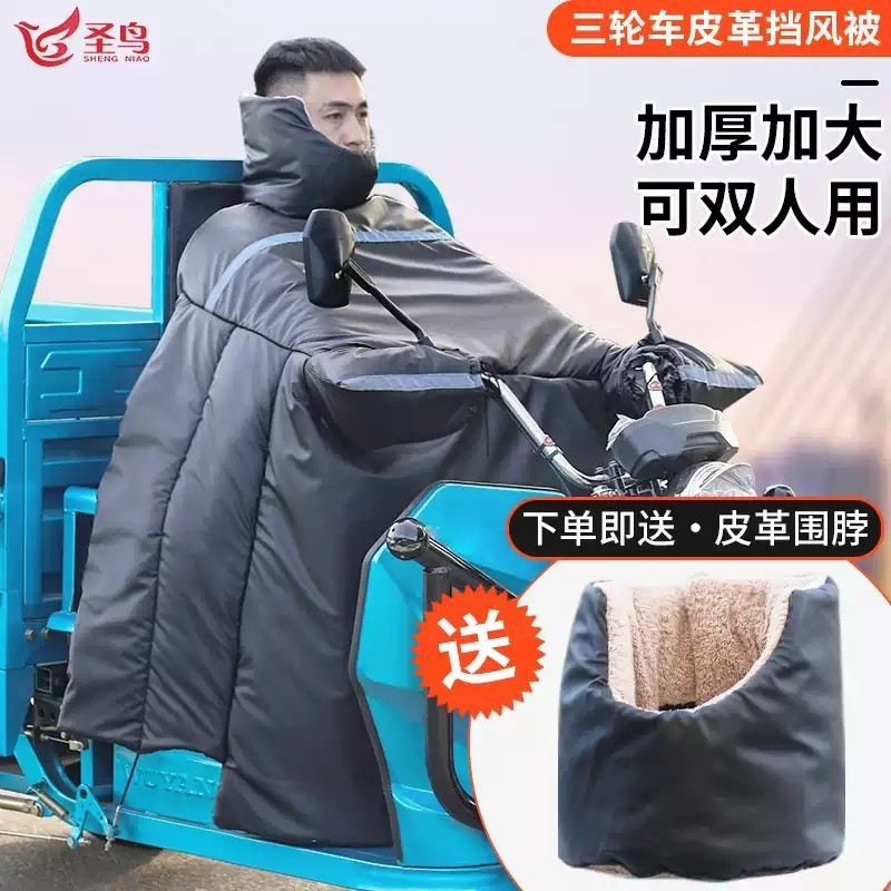 电动三轮车挡风被冬季加绒加厚加大专用防风罩pu皮防水双人御寒
