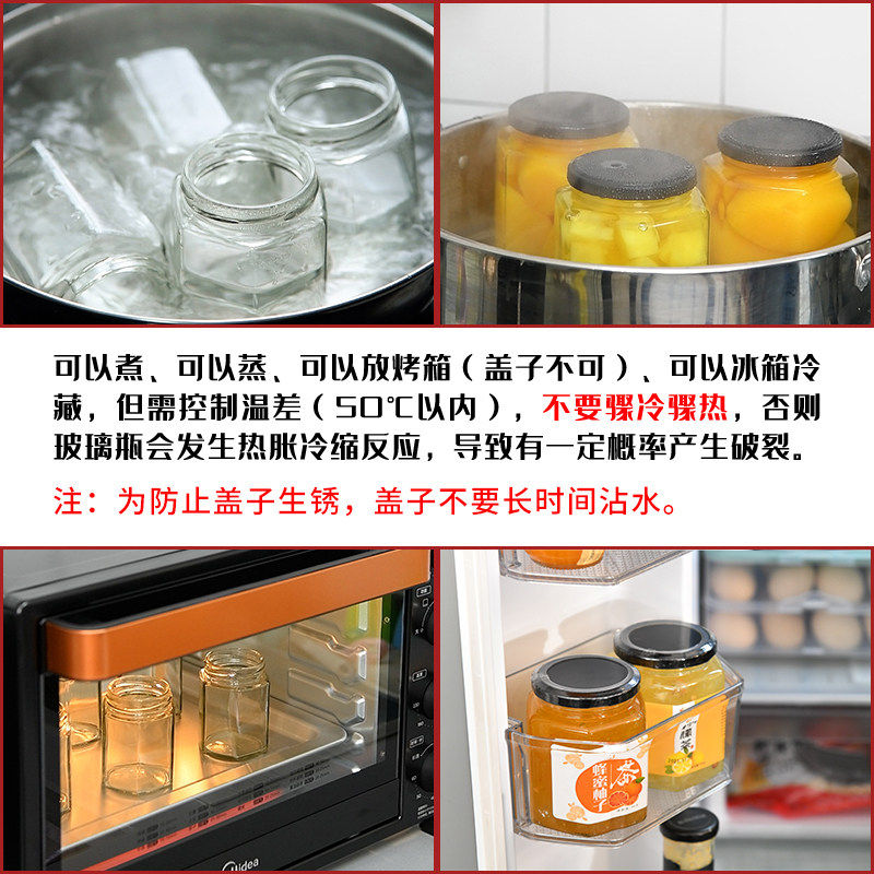 食品级玻璃瓶密封罐子小空瓶带盖斤装蜂蜜辣椒果酱罐头六角牛肉酱