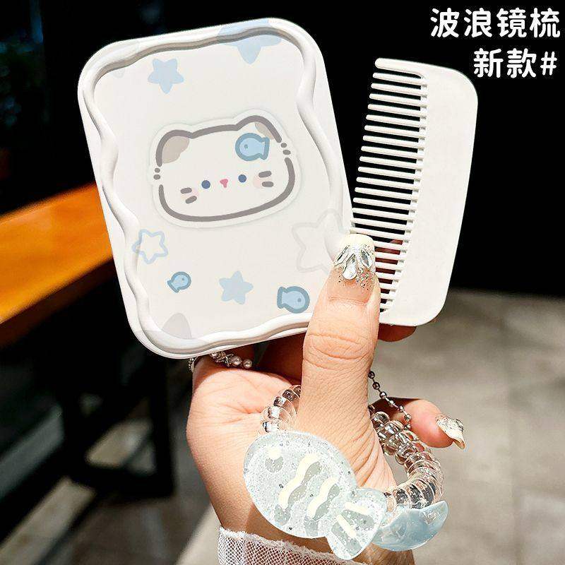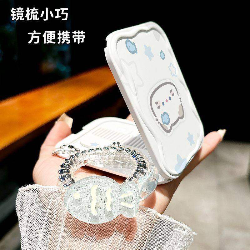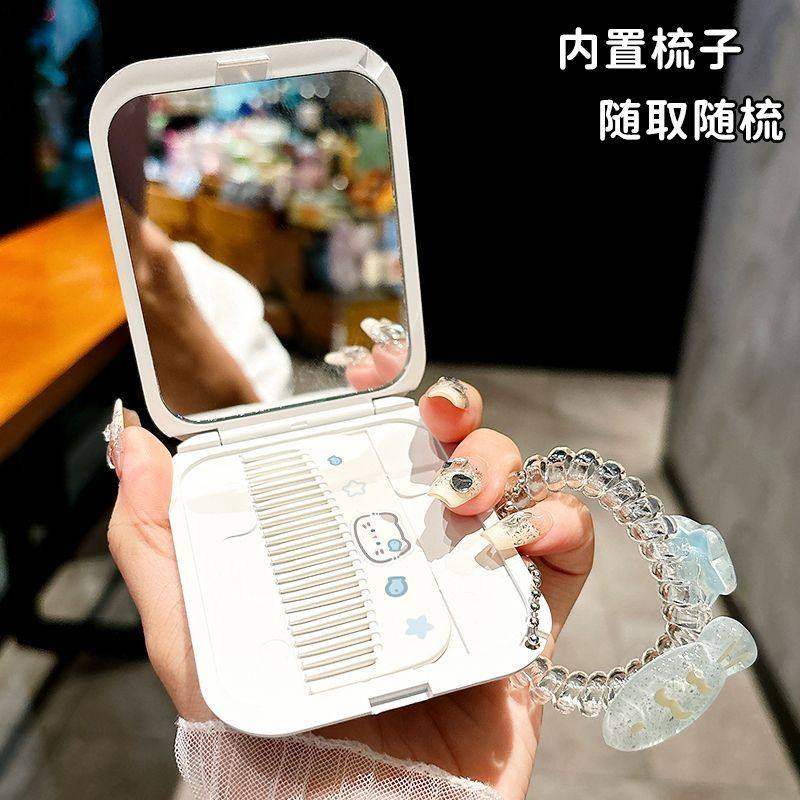 小镜子同图梳子随身带套装少女心手持翻盖小镜子上课口袋迷你镜梳