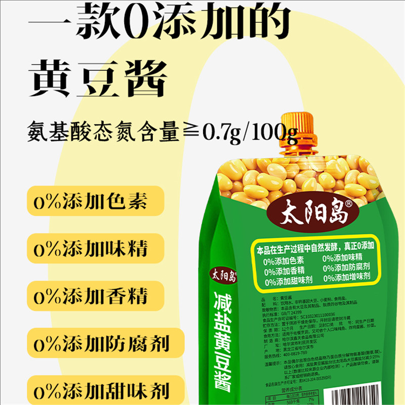 太阳岛450g无添加黄豆酱减盐0添加东北大酱豆瓣酱农家大酱蘸酱