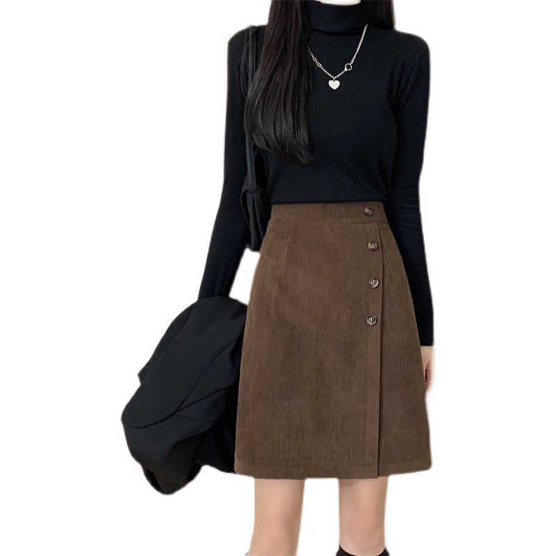 大码灯芯绒半身裙秋冬女高腰不规则中裙胖mm显瘦遮肚子a字裙短裙