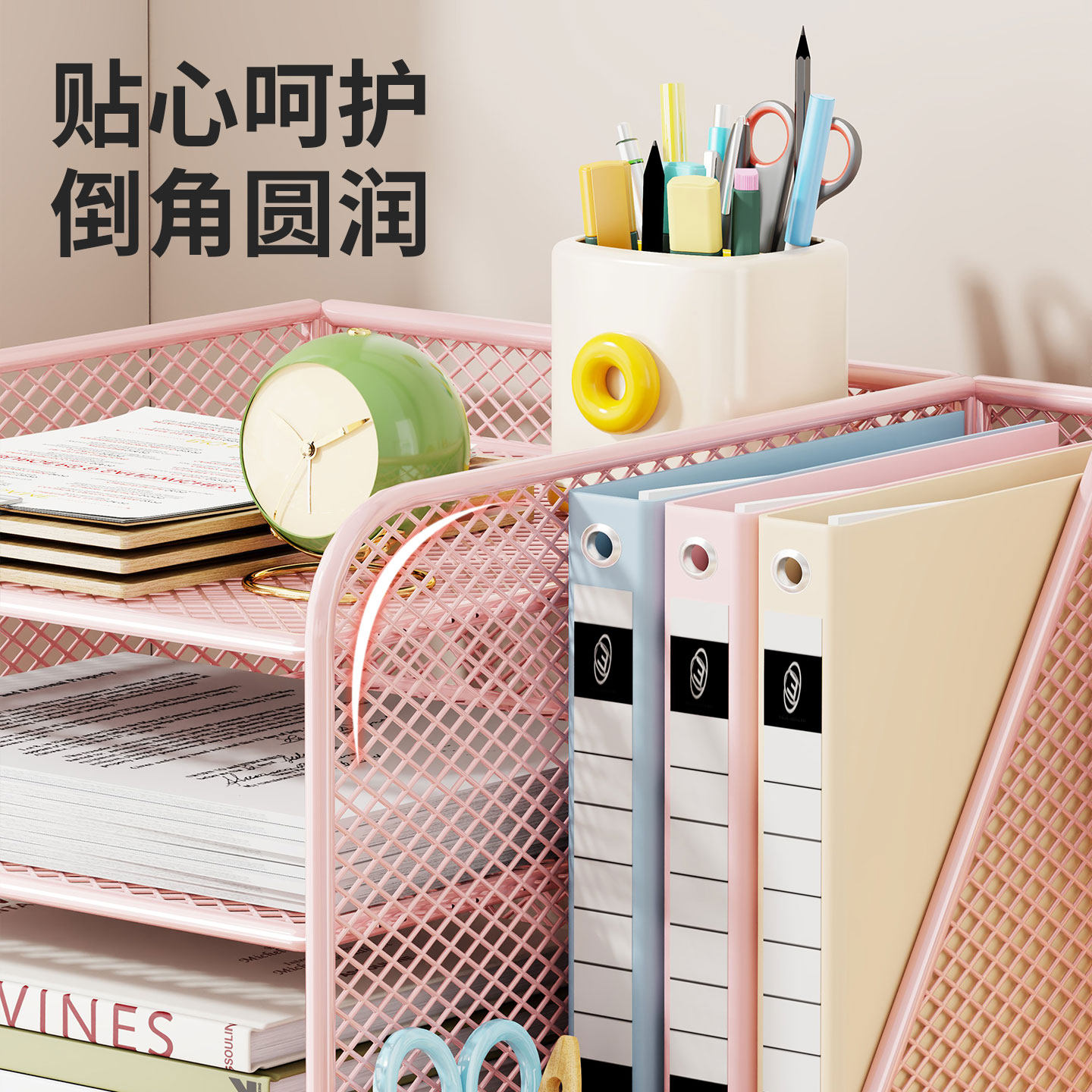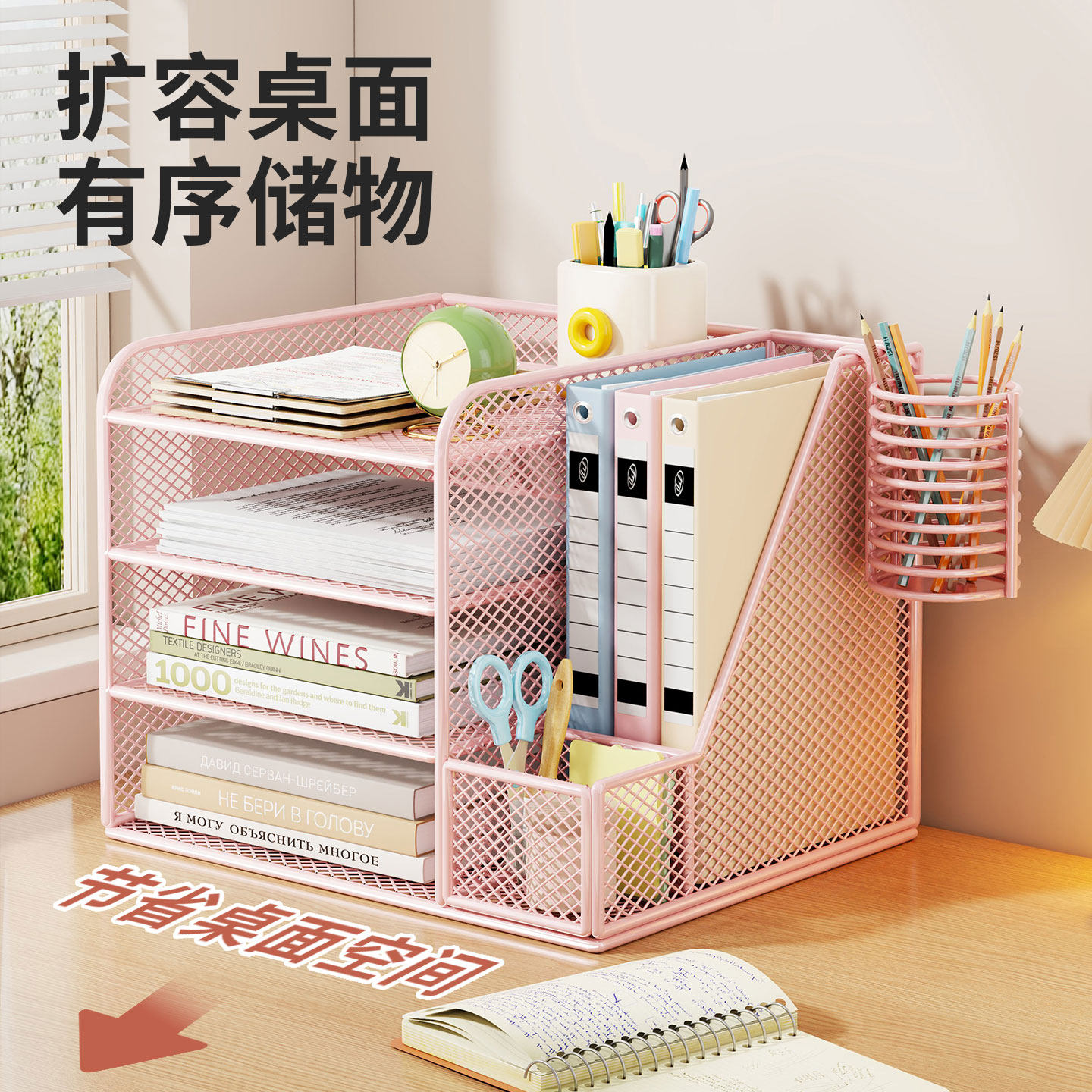 文件收纳架办公桌面用品置物架A4纸文件书架文件夹档案资料书桌多层整理盒办公室大容量铁艺工位文件框书立架