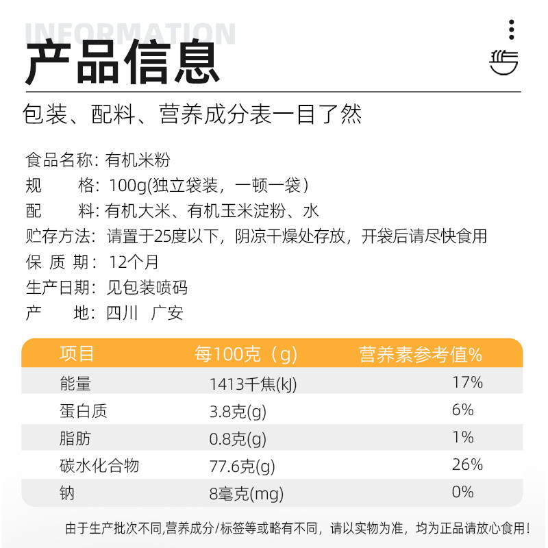 素稷四川有机米粉100g*5袋干米粉米线螺蛳粉家用云南过桥米线