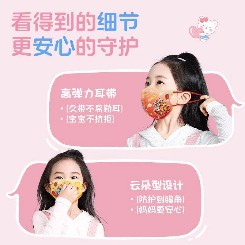 儿童KN95口罩4D立体学生卡通可爱小学生3到12岁四层防护独立包装