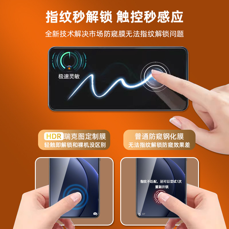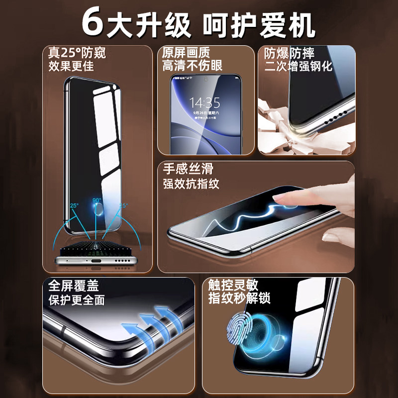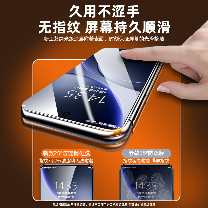 升级指纹秒解版 新25°真防窥膜 高透光无色