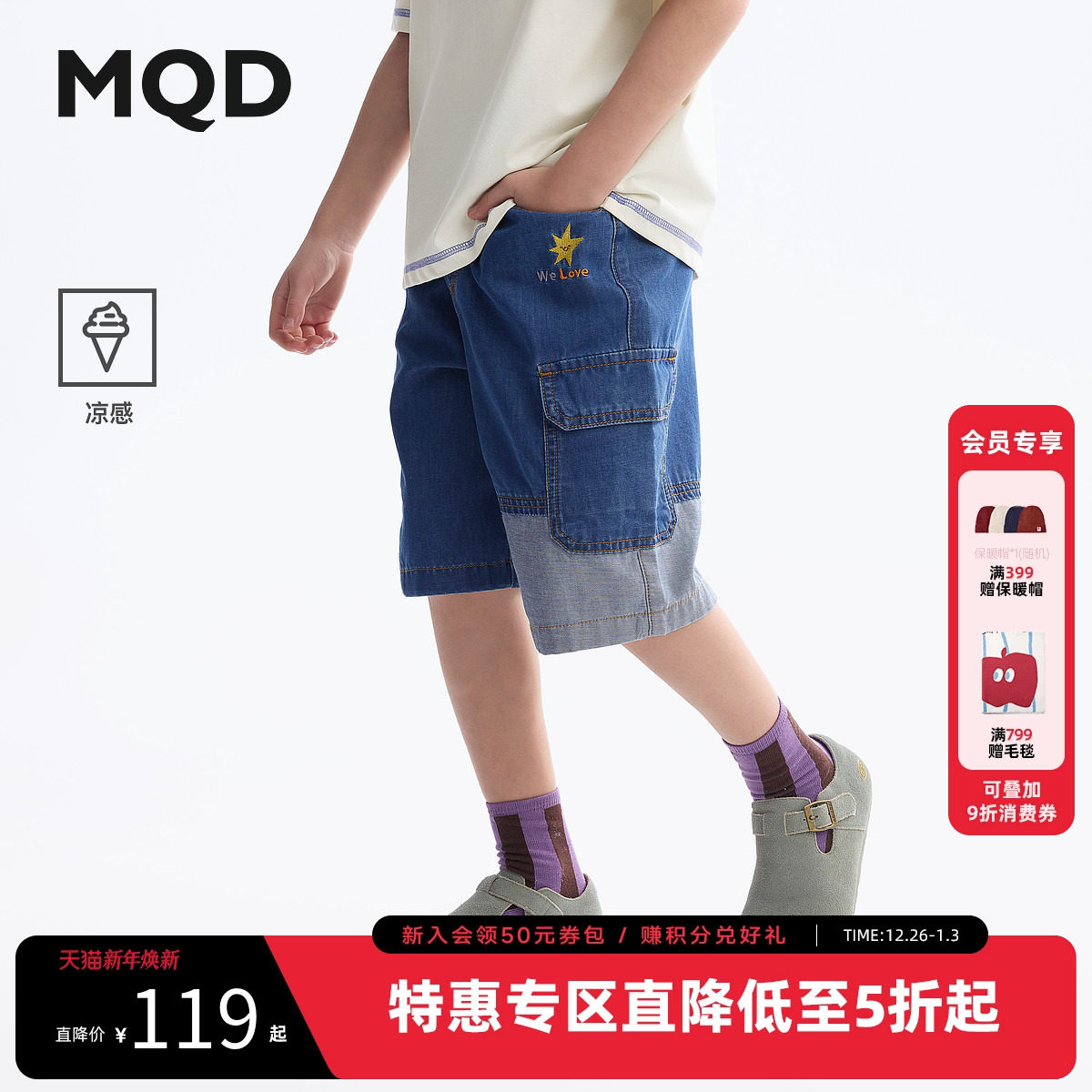 【凉感】MQD童装男童牛仔短裤2025夏装新款儿童拼接牛仔五分短裤
