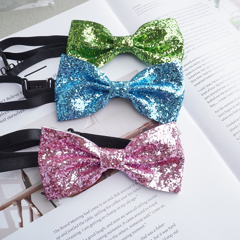 闪粉蝴蝶结领结配件装饰皮包芯主持礼服男童蝴蝶结领带配饰钻饰