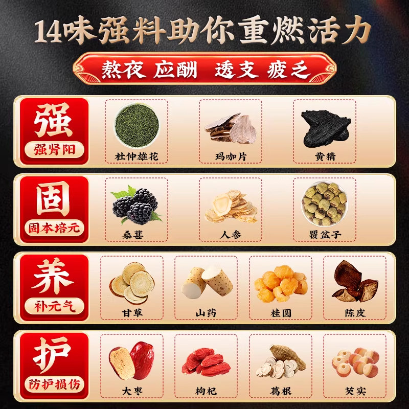 同仁堂人参枸杞玛咖黄精肉苁蓉杜仲八宝茶男人熬夜补精强肾养生茶