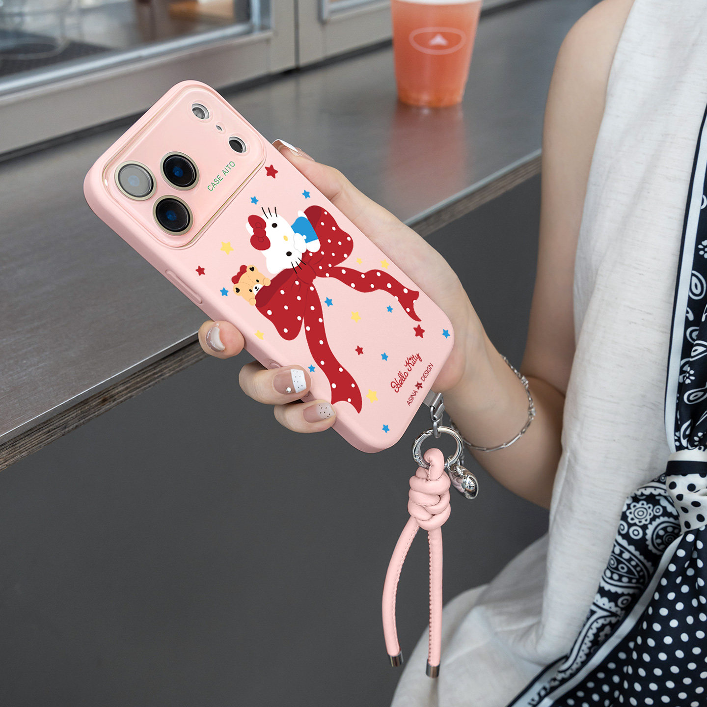 粉KT蝴蝶结适用苹果秒变17promax手机壳iphone16新款保护套14高级感Ao6液态硅胶可爱15pro全包镜头13大视窗女