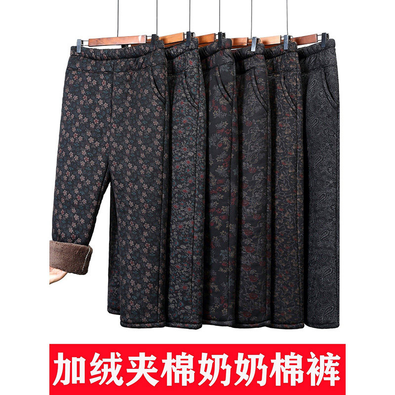 中老年人女裤加绒加厚夹棉裤子妈妈冬季保暖裤奶奶棉裤小个子洋气
