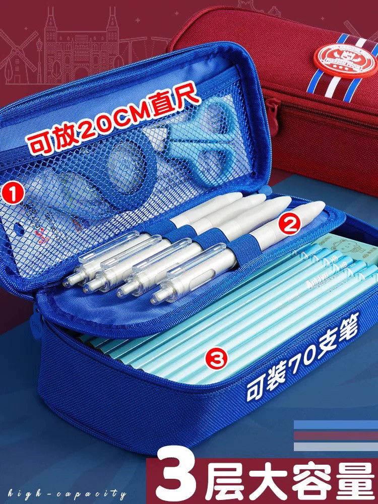 得力笔袋大容量多层文具盒男女孩简约中小学生高颜值铅笔盒收纳袋
