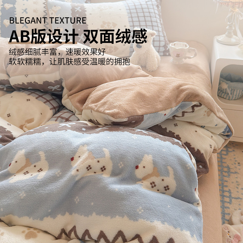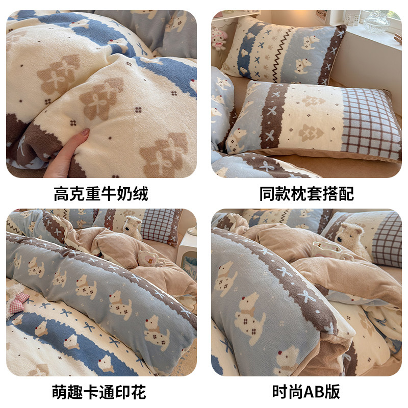 秋冬季加厚四件套牛奶绒被套床单双面加绒被罩床笠学生宿舍三件套