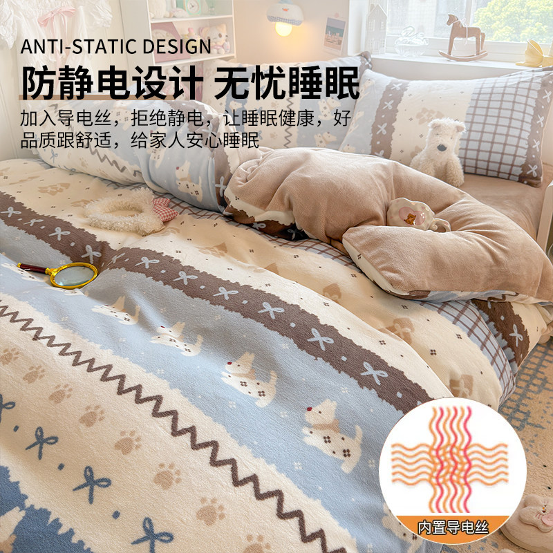 无印良品牛奶绒床上四件套卡通珊瑚绒床单冬双面加绒学生宿舍被套