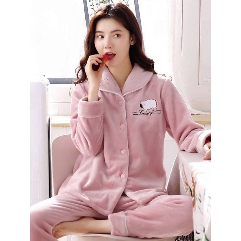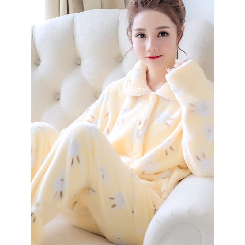 红豆珊瑚绒睡衣女春秋季长袖开衫加肥加大码中老年加绒保暖睡衣秋