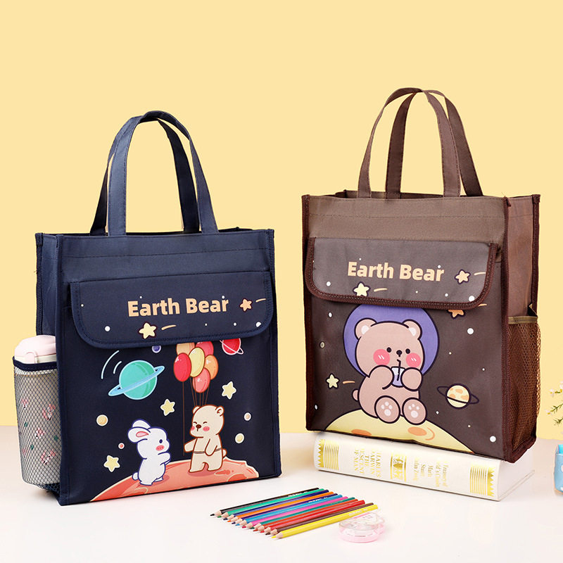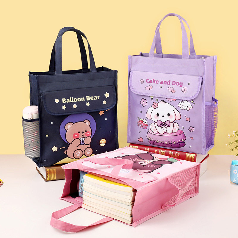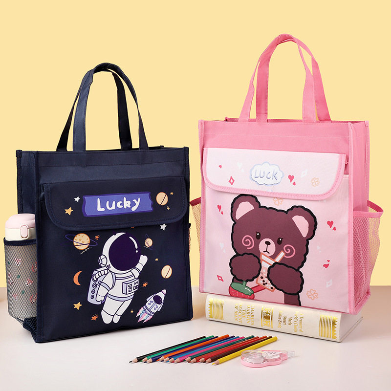 手提补课补习袋学生A4手提袋小学生卡通书袋书包便当包饭盒袋帆布