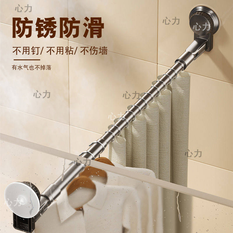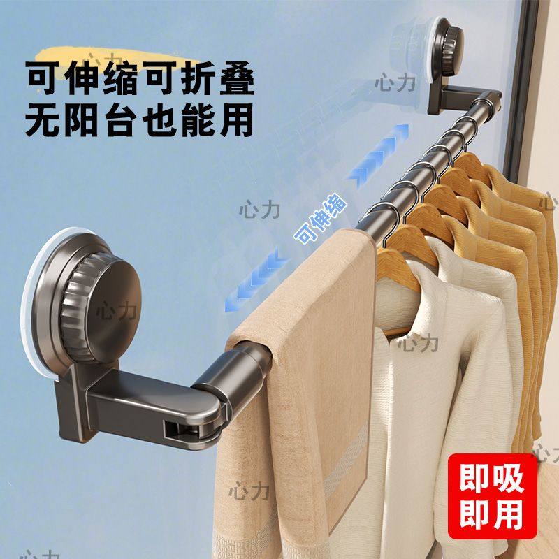吸盘式阳台壁挂晾晒架可调节护栏窗户晒鞋架室外伸缩晾晒杆晾衣杆