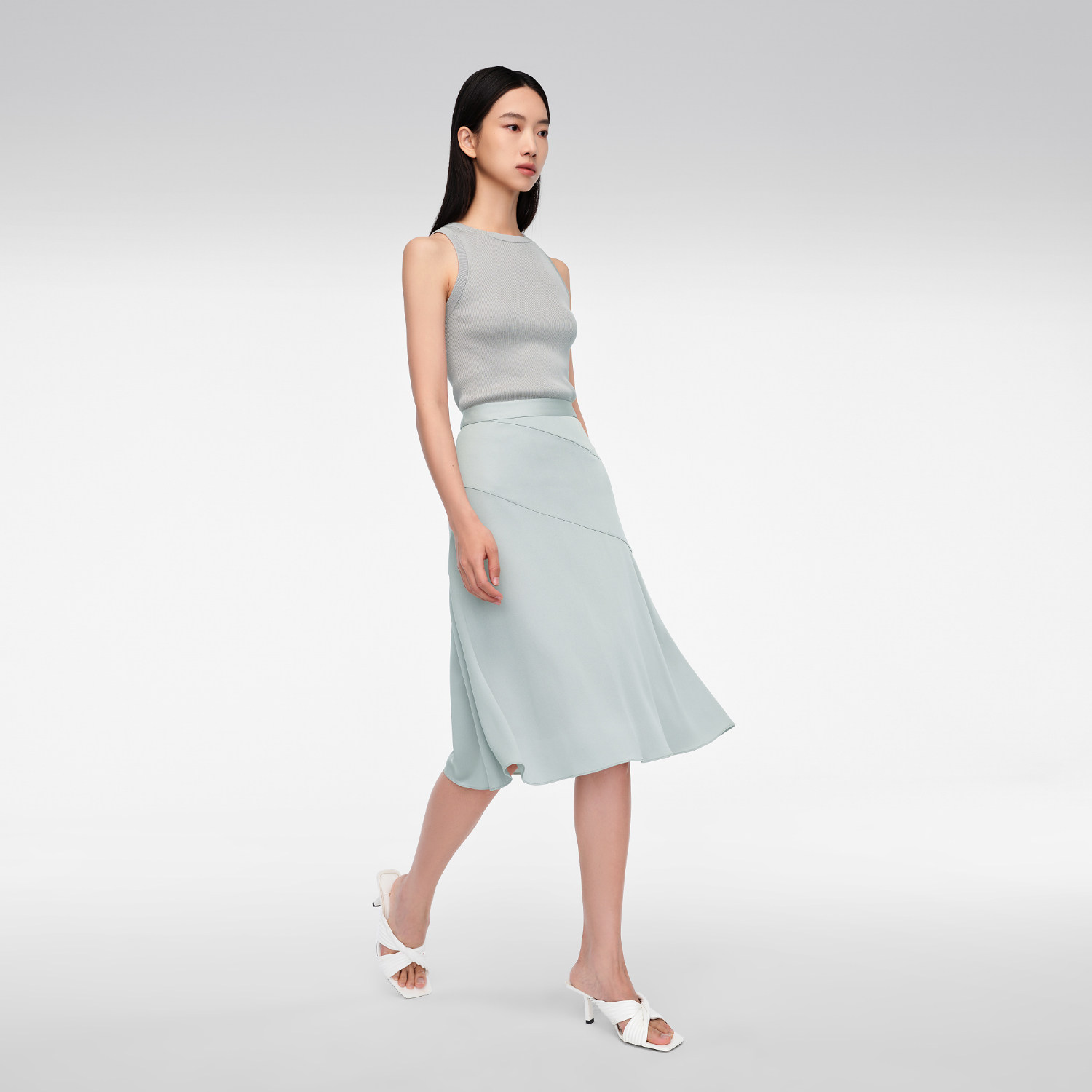 OVV春夏热卖女装醋酸混纺斜向分割设计感A字半身裙