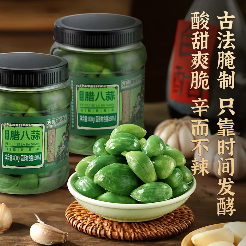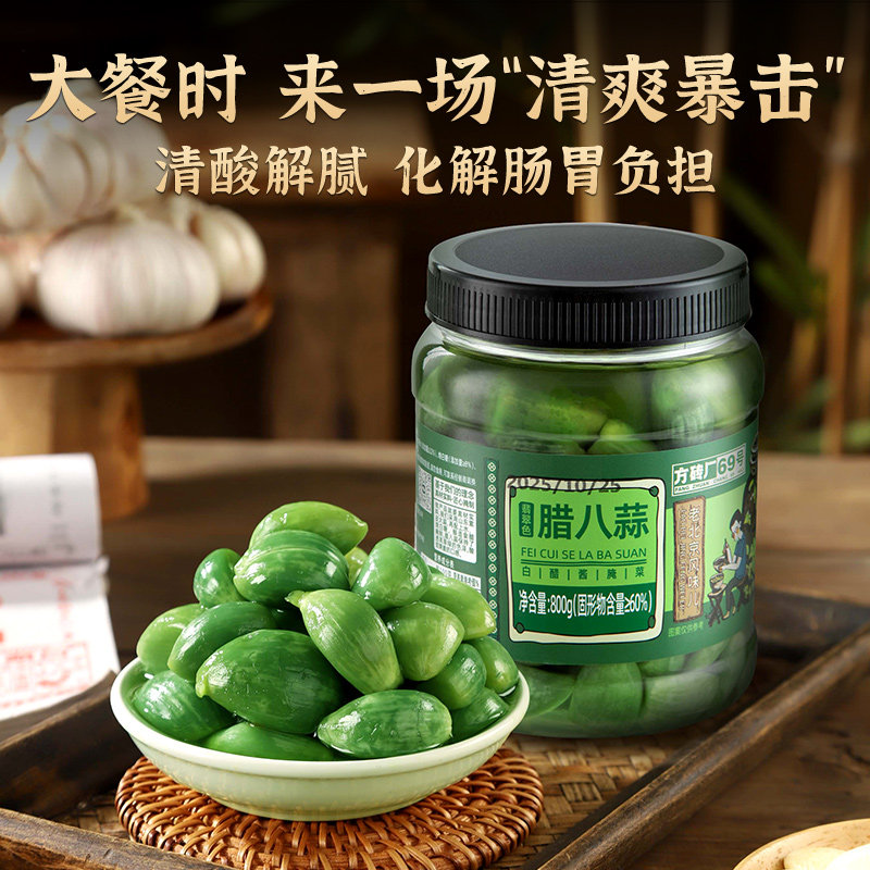 方砖厂69号翡翠腊八蒜北京特产酱腌菜糖醋蒜下饭菜开胃菜800g瓶装
