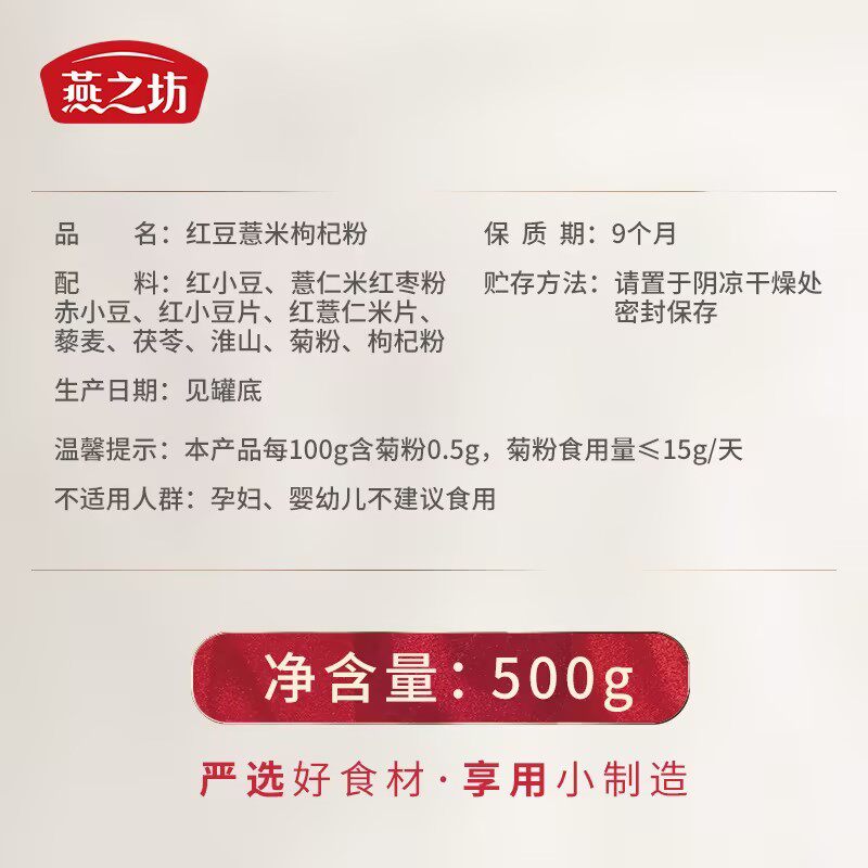 燕之坊红豆薏米枸杞粉500g五谷薏米仁高蛋白低脂代餐冲饮早餐