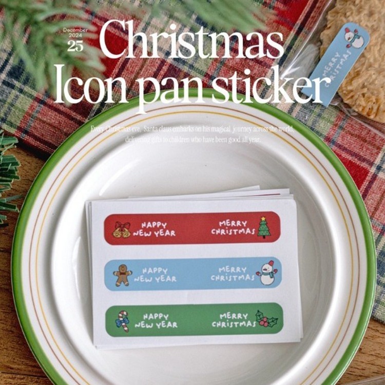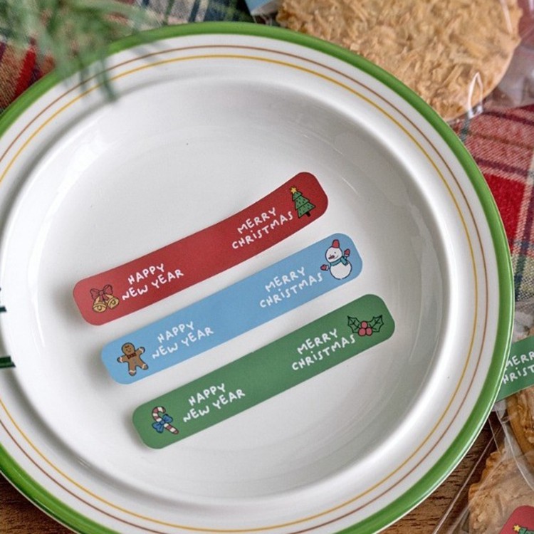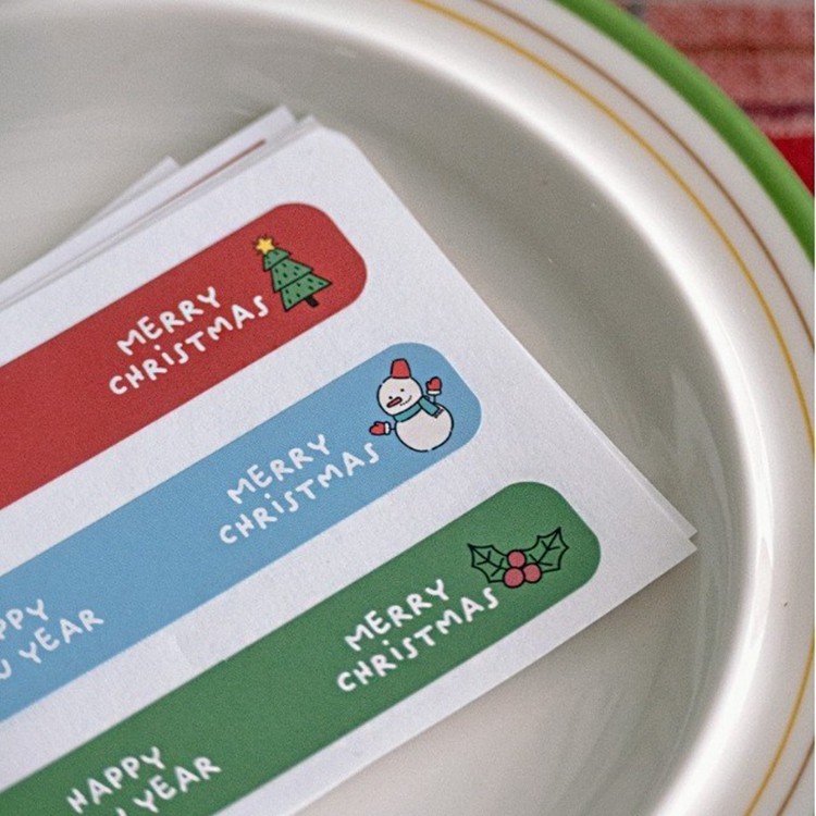 240枚 圣诞节卡通礼物包装装饰贴纸彩色长条封口贴标签贴礼袋封口