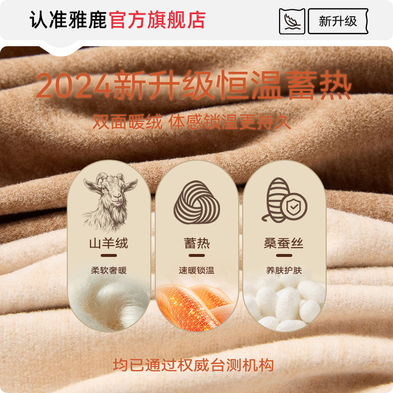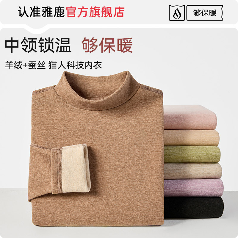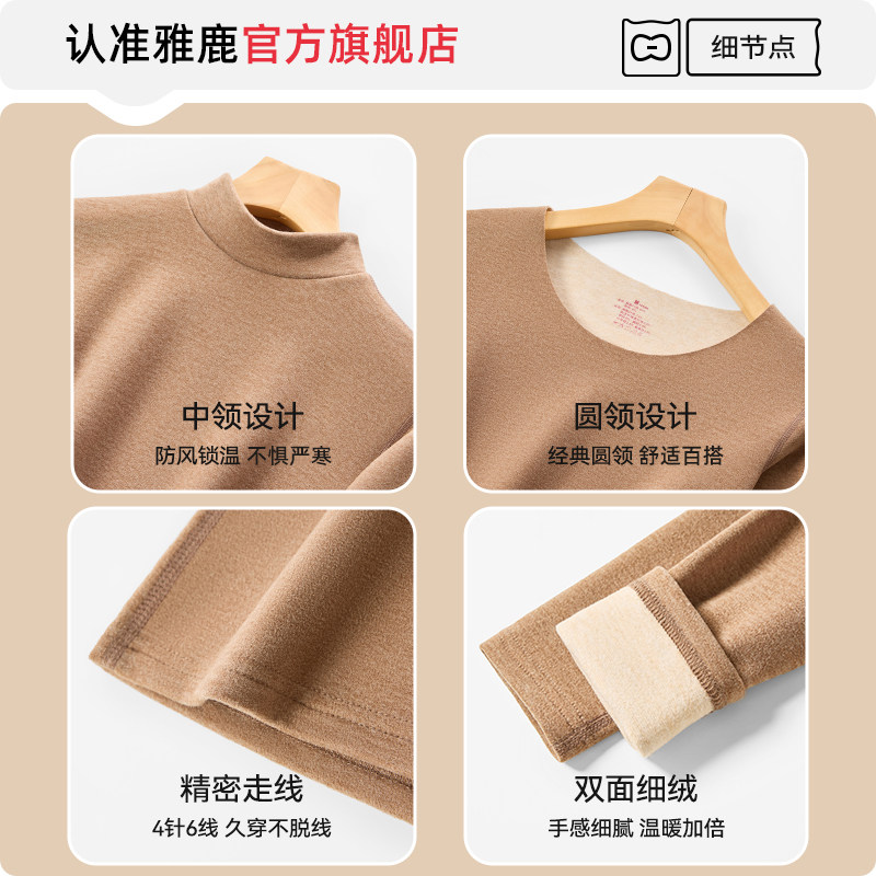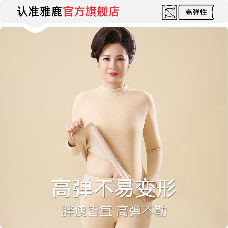 雅鹿中老年人高领秋衣秋裤套装女士保暖妈妈内衣加绒加厚大码冬季