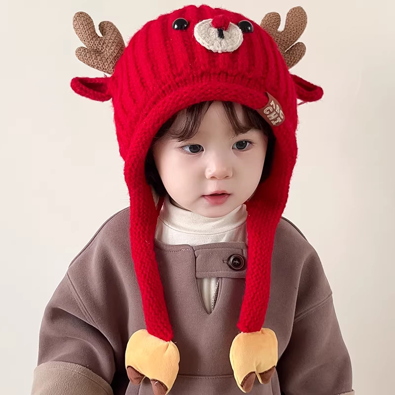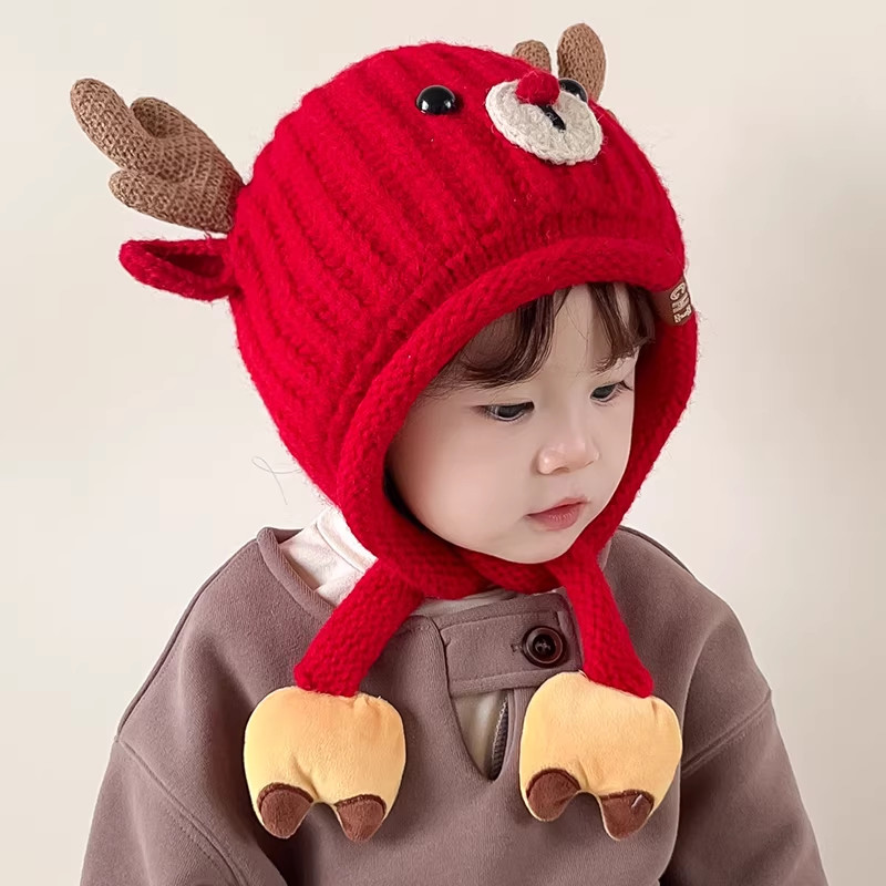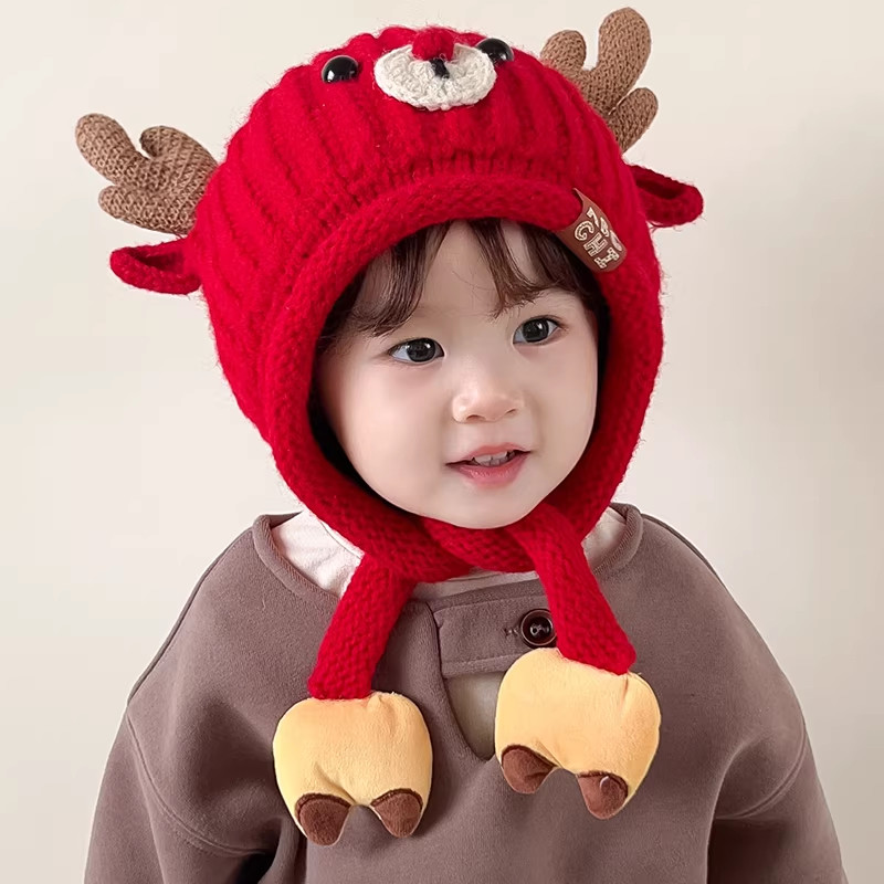 宝宝帽子冬季护耳针织帽女童防风加厚新年毛线帽秋冬儿童2025新款