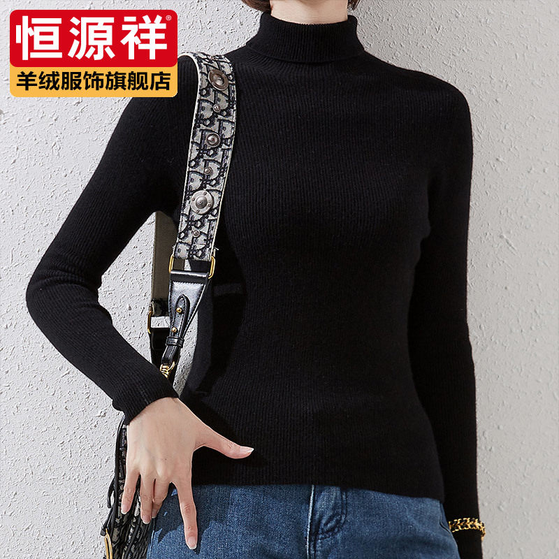 清仓恒源祥时尚简约纯色高领羊毛衫女秋冬新款修身显瘦打底毛衣