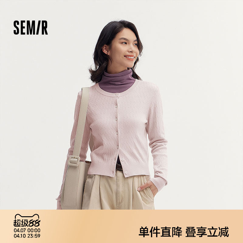 森马针织开衫女短款绞花修身内搭打底休闲秋季简约圆领衣服甜美风