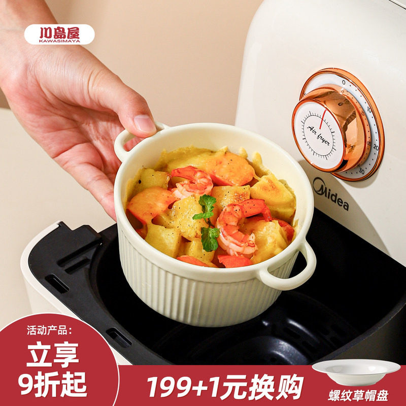 川岛屋空气炸锅专用烤碗家用双耳烘焙碗蒸蛋碗陶瓷烤盘烤箱用器皿