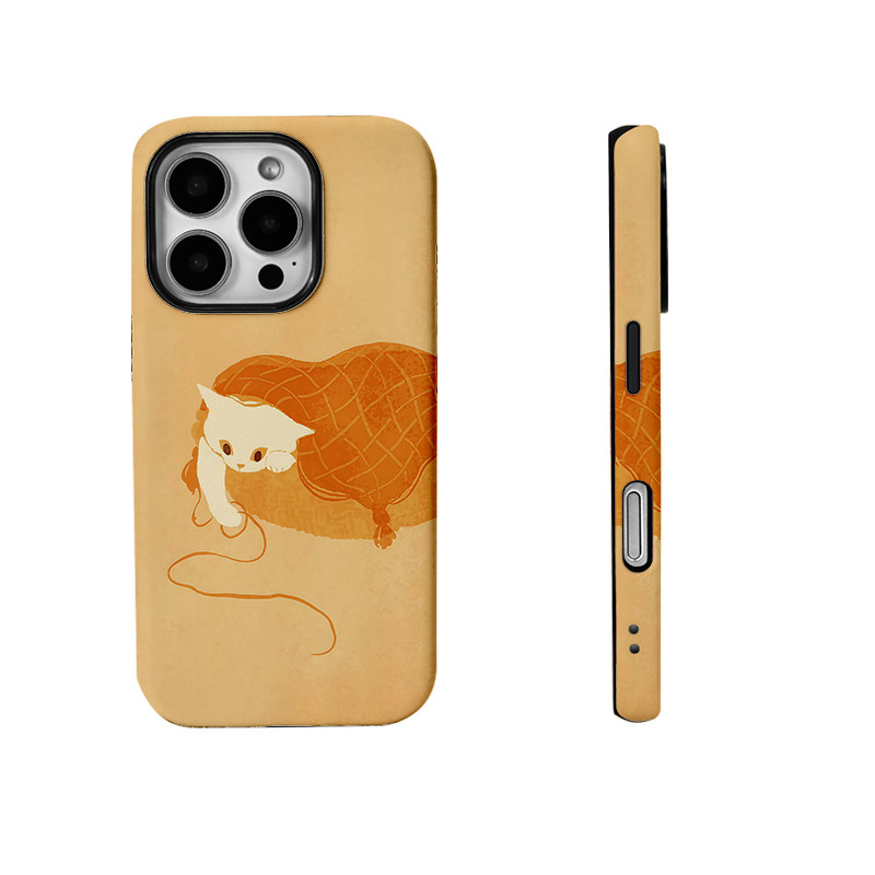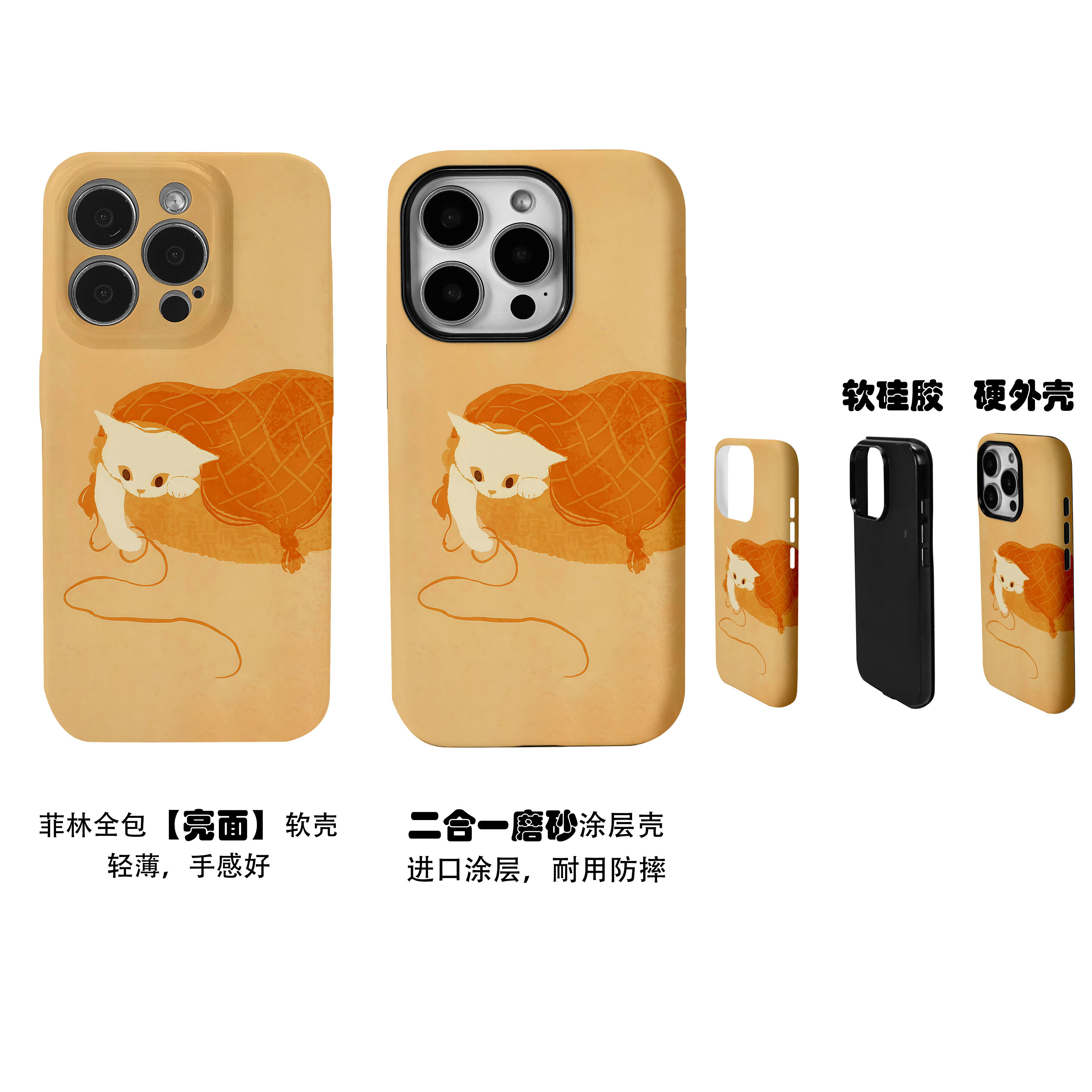 慵懒时光玩线团的小猫菲林二合一手机壳适用苹果17nova14华为p70mate60小米15opporen14ovivo荣耀300iPhone16