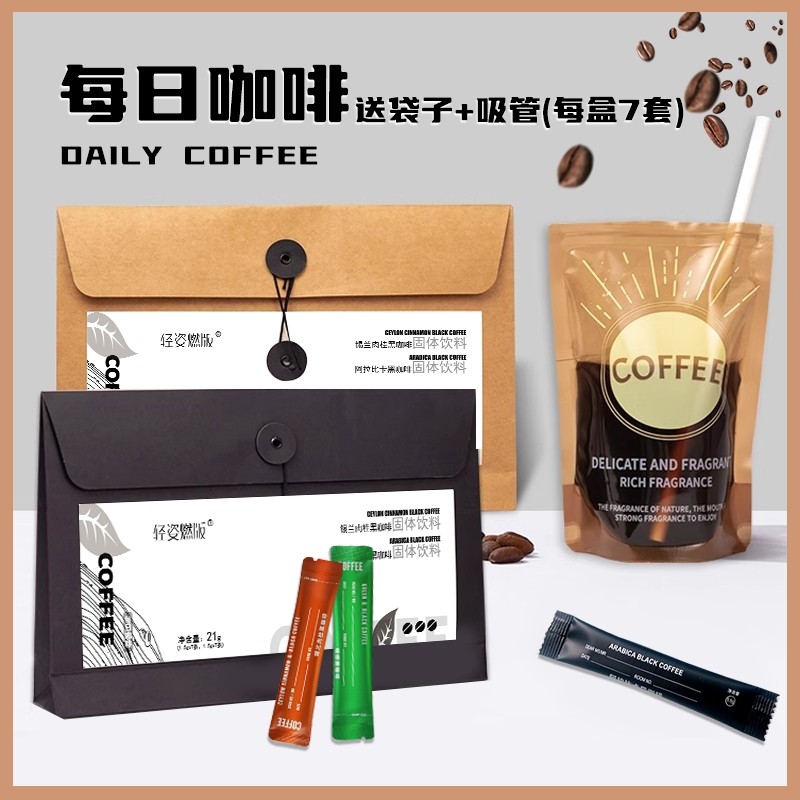 每日黑美式咖啡阿拉比卡绿燃无糖减0脂袋装速溶咖啡提高代谢正品