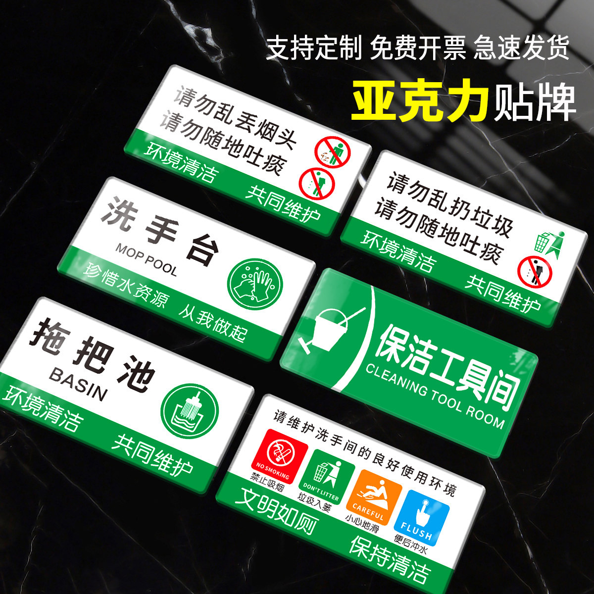 洗手台清洁用品放置处标识亚克力标志酒店保洁工具间卫生间拖把池