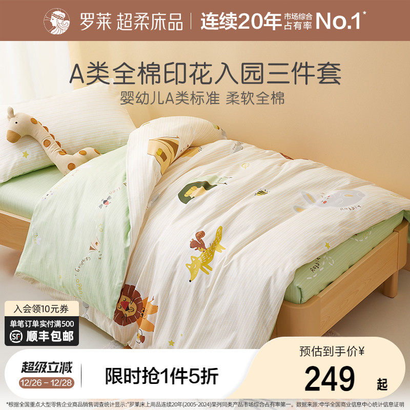 罗莱家纺儿童幼儿园午睡纯棉被套被罩床单三件套开学宝宝床品套件