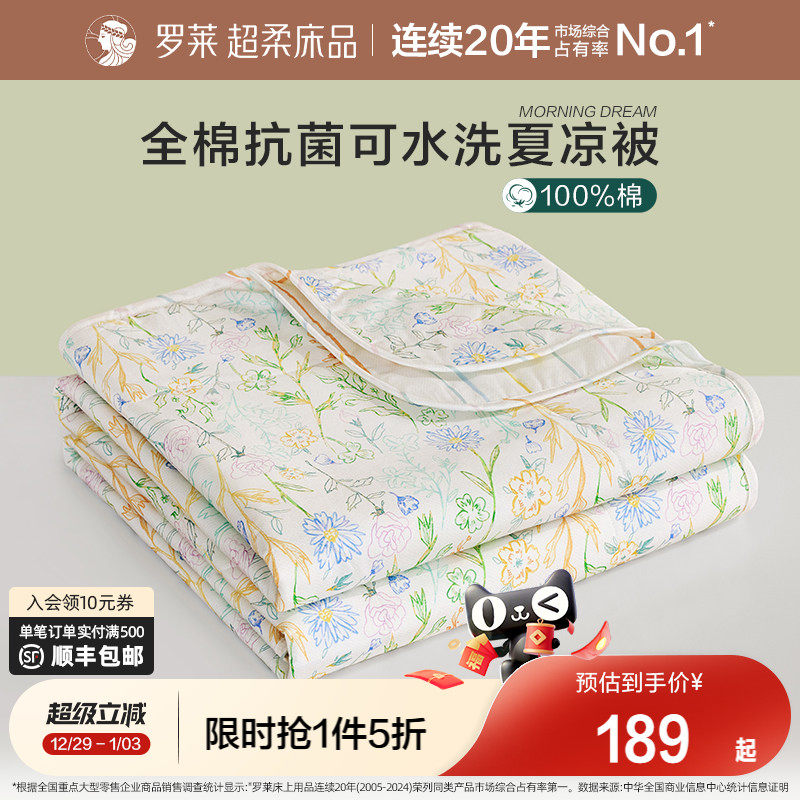 罗莱夏季被子被芯空调被学生宿舍全棉面料7A抗菌纤维可水洗夏被
