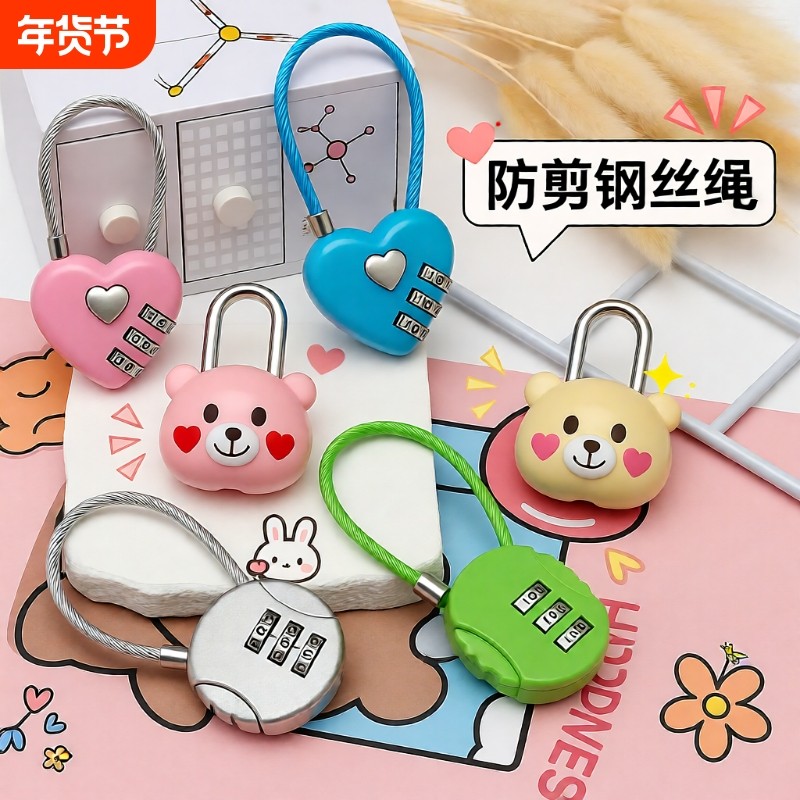 密码锁挂锁柜子锁可爱钢丝锁行李箱迷你锁头带钥匙学生头盔防水