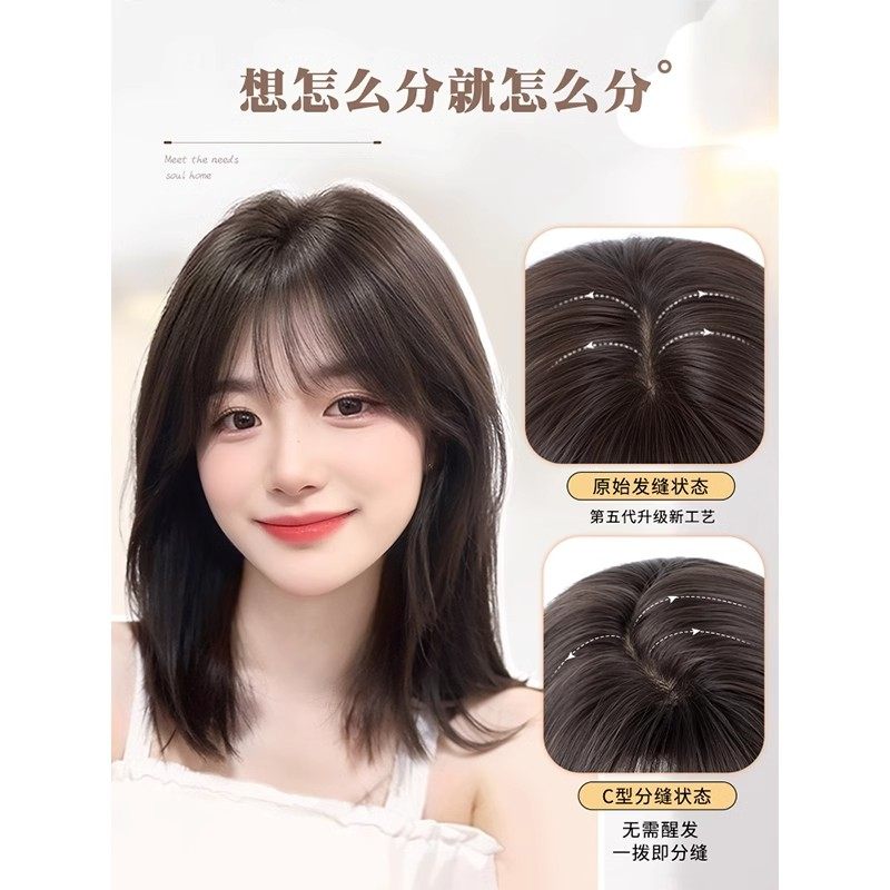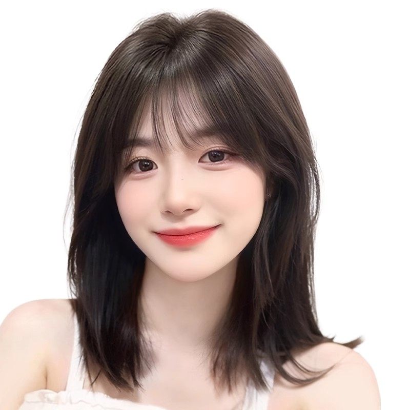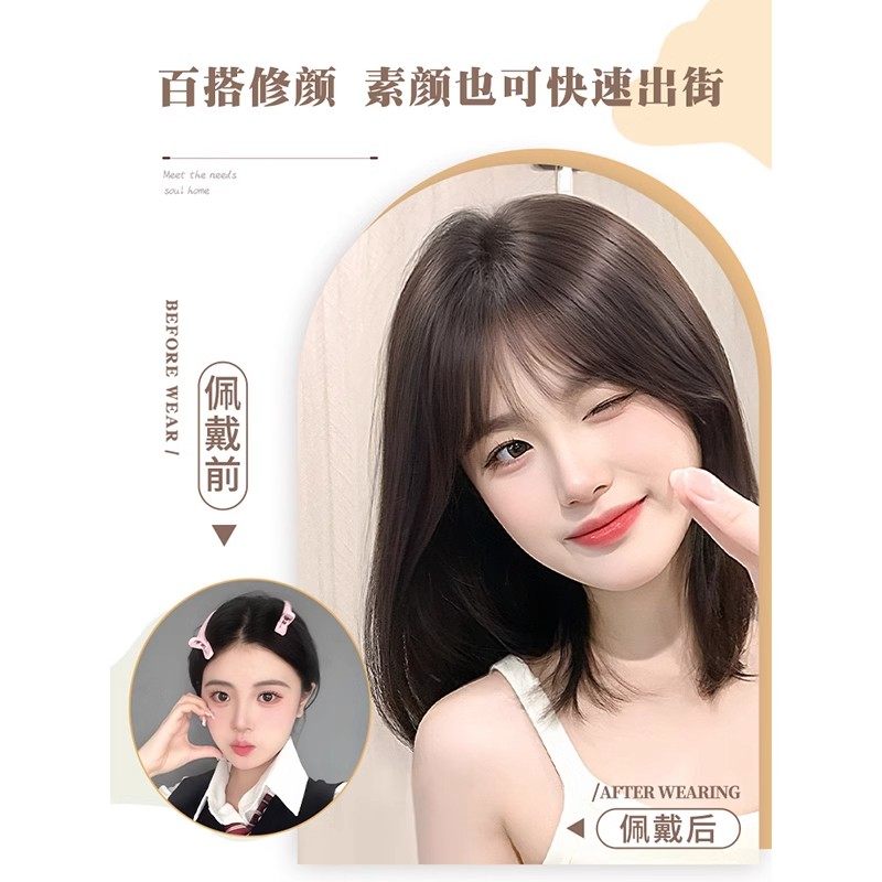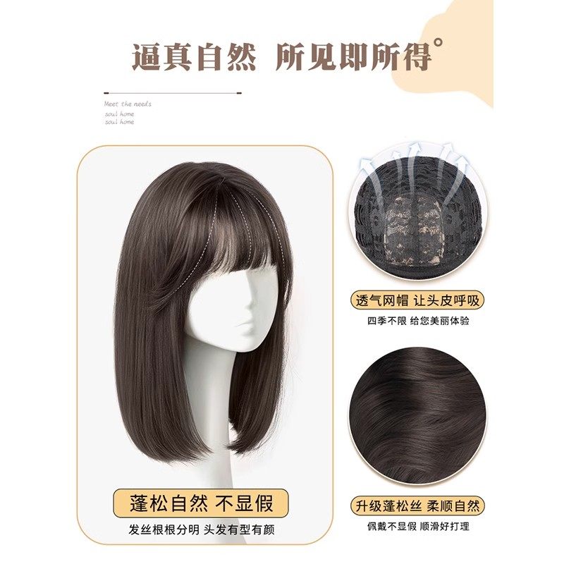 假发全头套女自然仿真锁骨发轻薄无痕日常整顶式短发蕾丝刘海直发