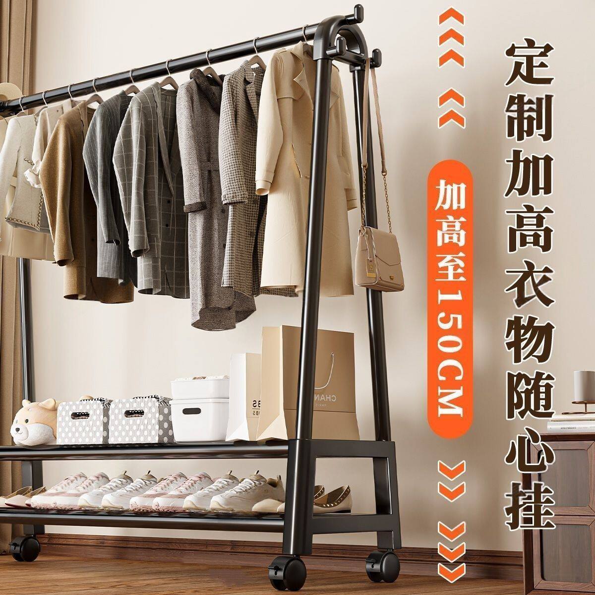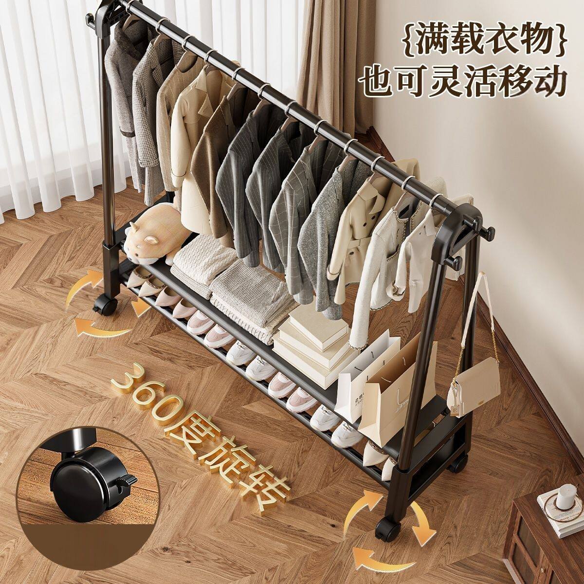 网红可移动挂衣架落地卧室家用室内衣服收纳置物架衣帽架客厅阳台