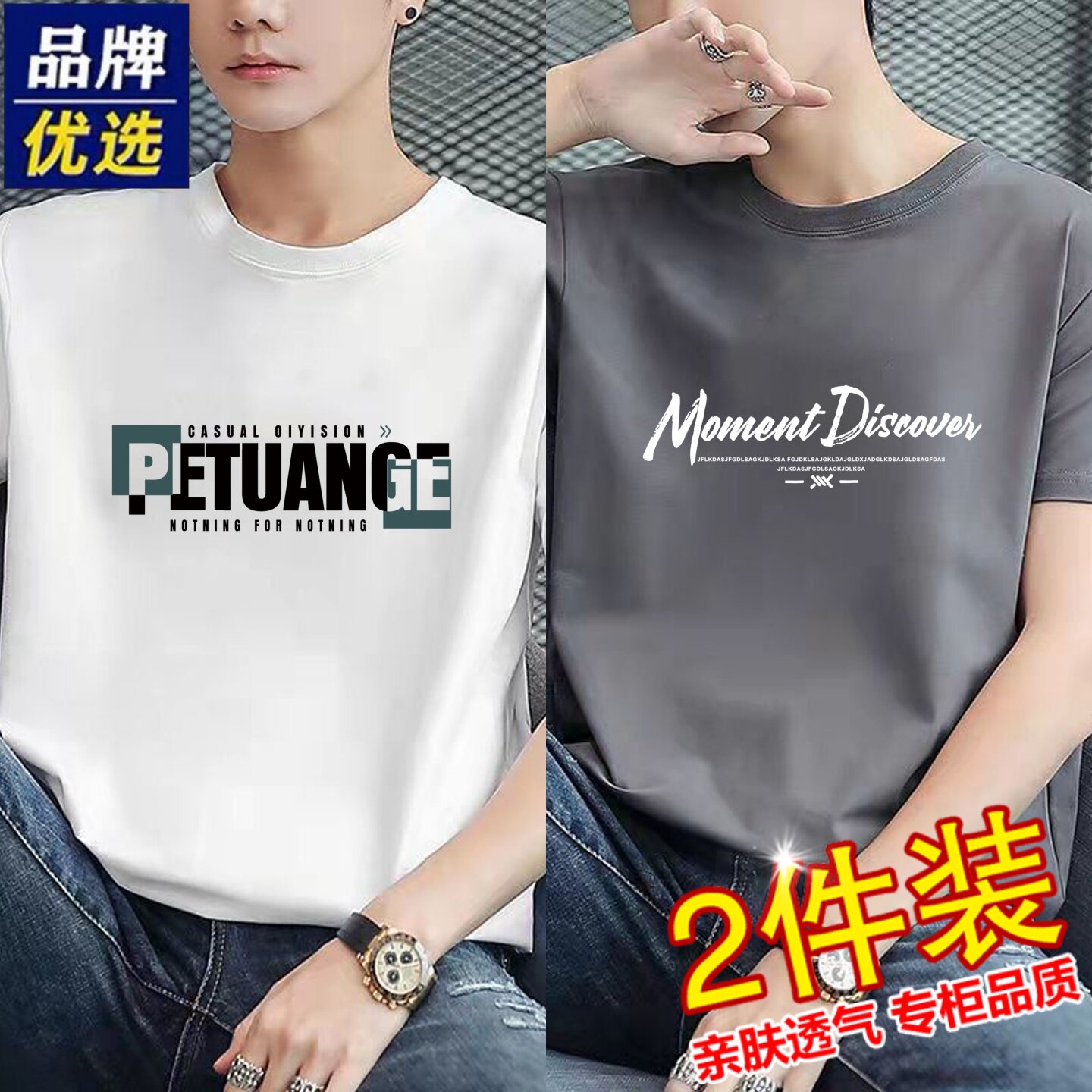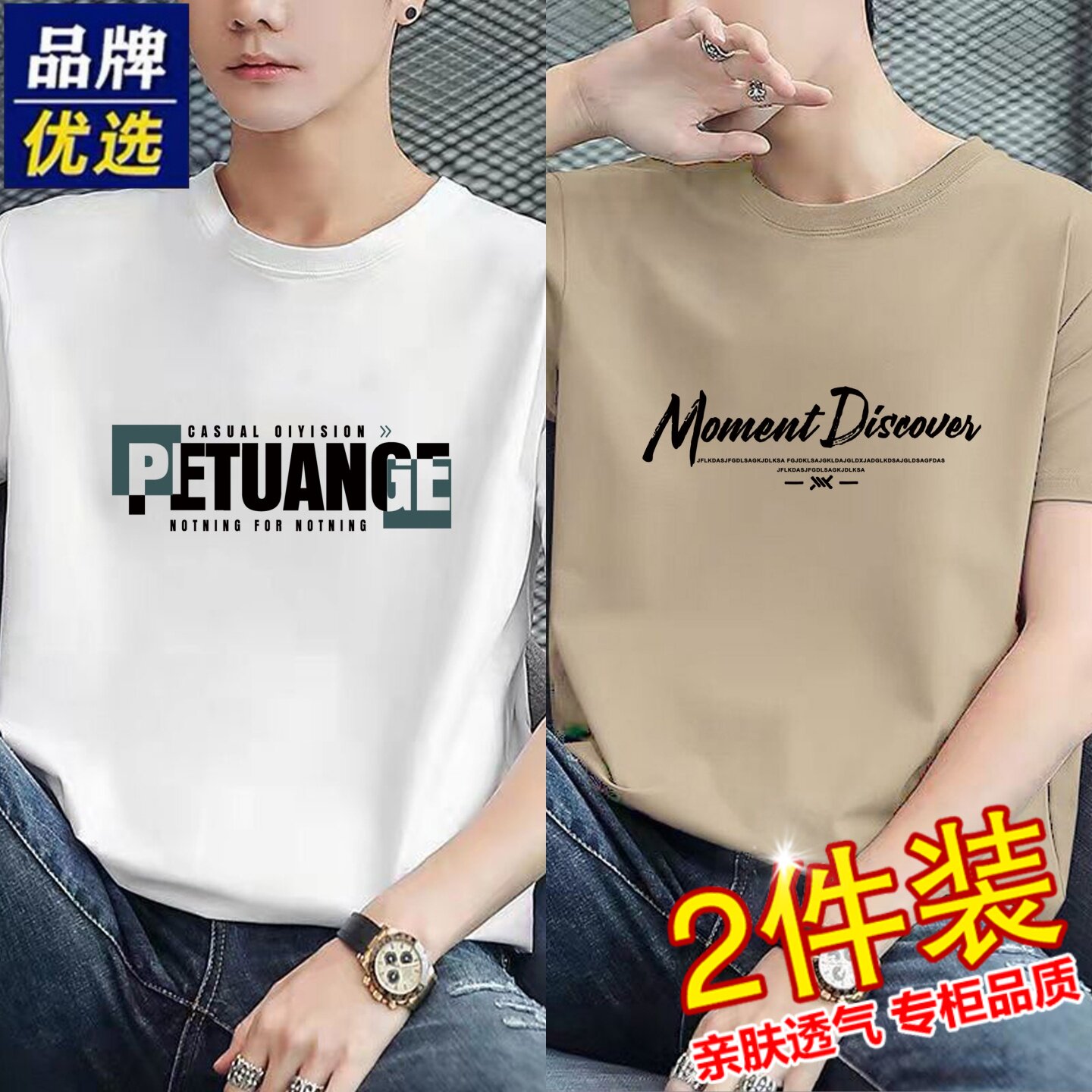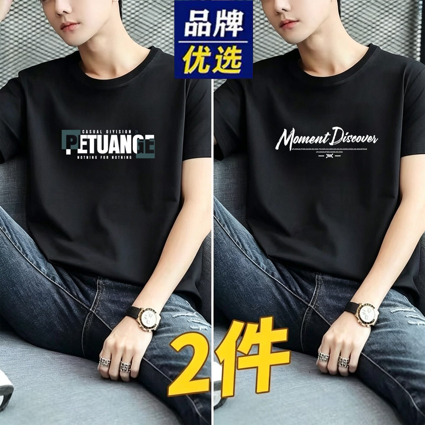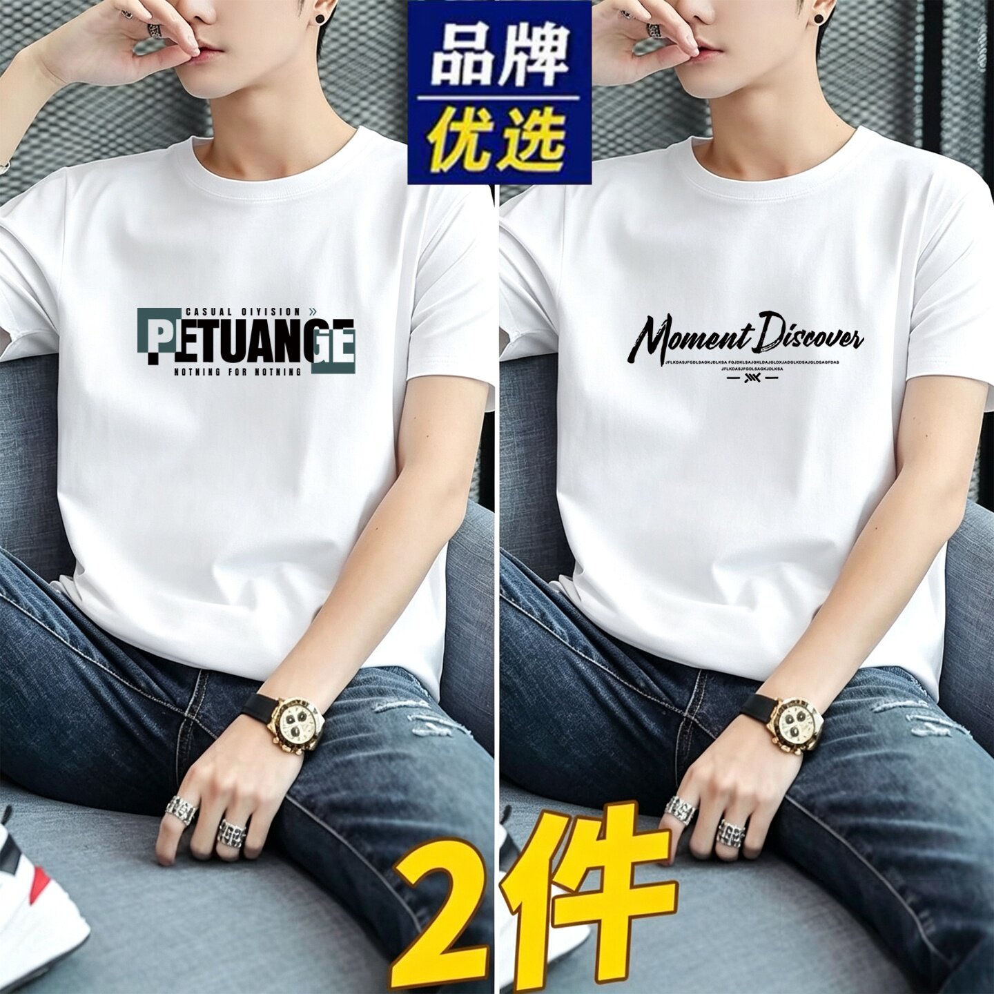 春夏新款短袖T恤纯棉男士潮半袖体恤上衣服透气黑色白色潮流休闲