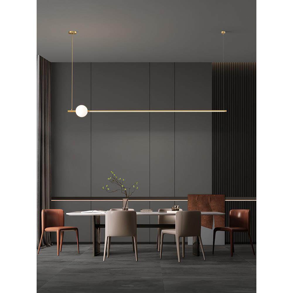 全铜轻奢餐厅吊灯极简餐桌灯现代简约吧台办公室长条灯饰灯具