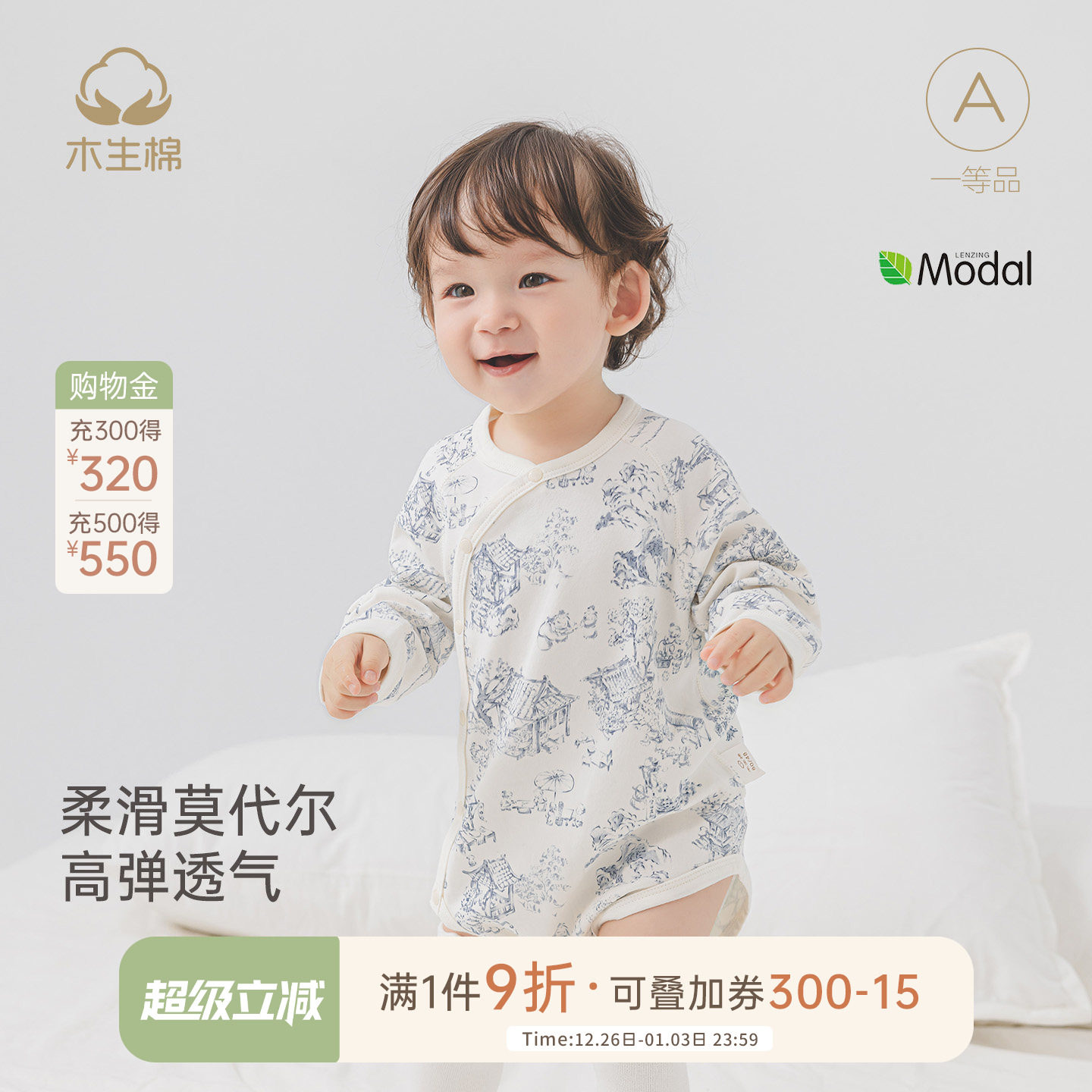【莫代尔】男女宝宝春秋季长袖包屁衣婴幼儿连体三角哈衣弹力爬服